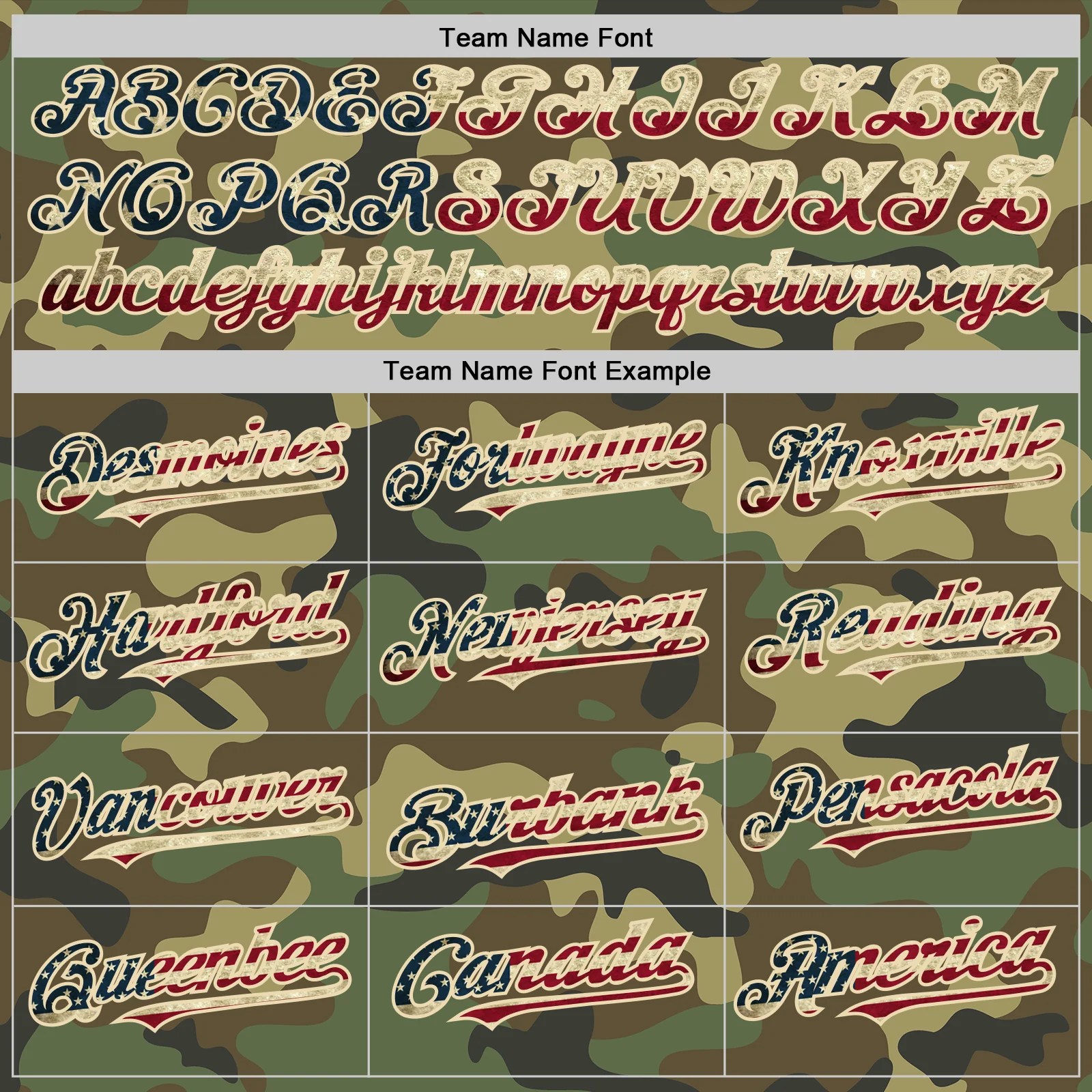 Custom Camo Vintage USA Flag Cream-Black 3D Bomber Full-Snap Varsity Letterman Salute To Service Hoodie Jacket