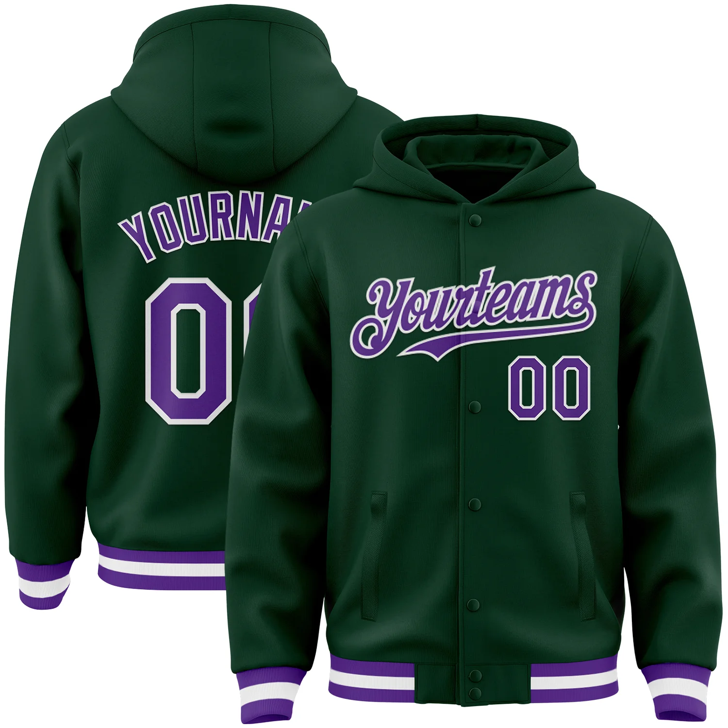 Custom Green Purple-White Bomber Full-Snap Varsity Letterman Hoodie Jacket