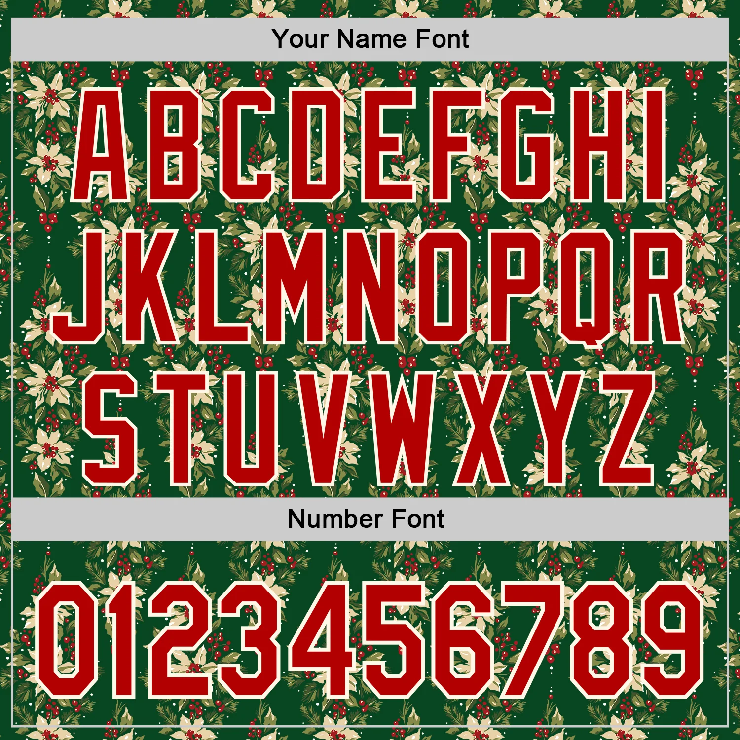 Custom Stitched Green Red-Cream 3D Christmas Floral Sports Pullover Sweatshirt Hoodie