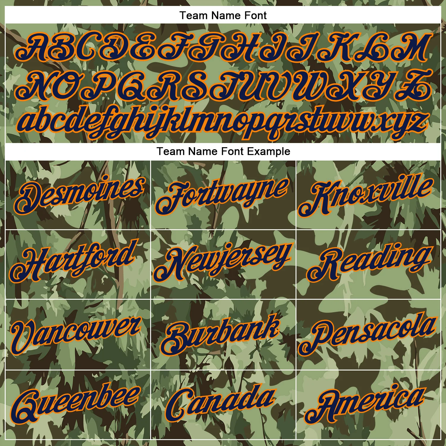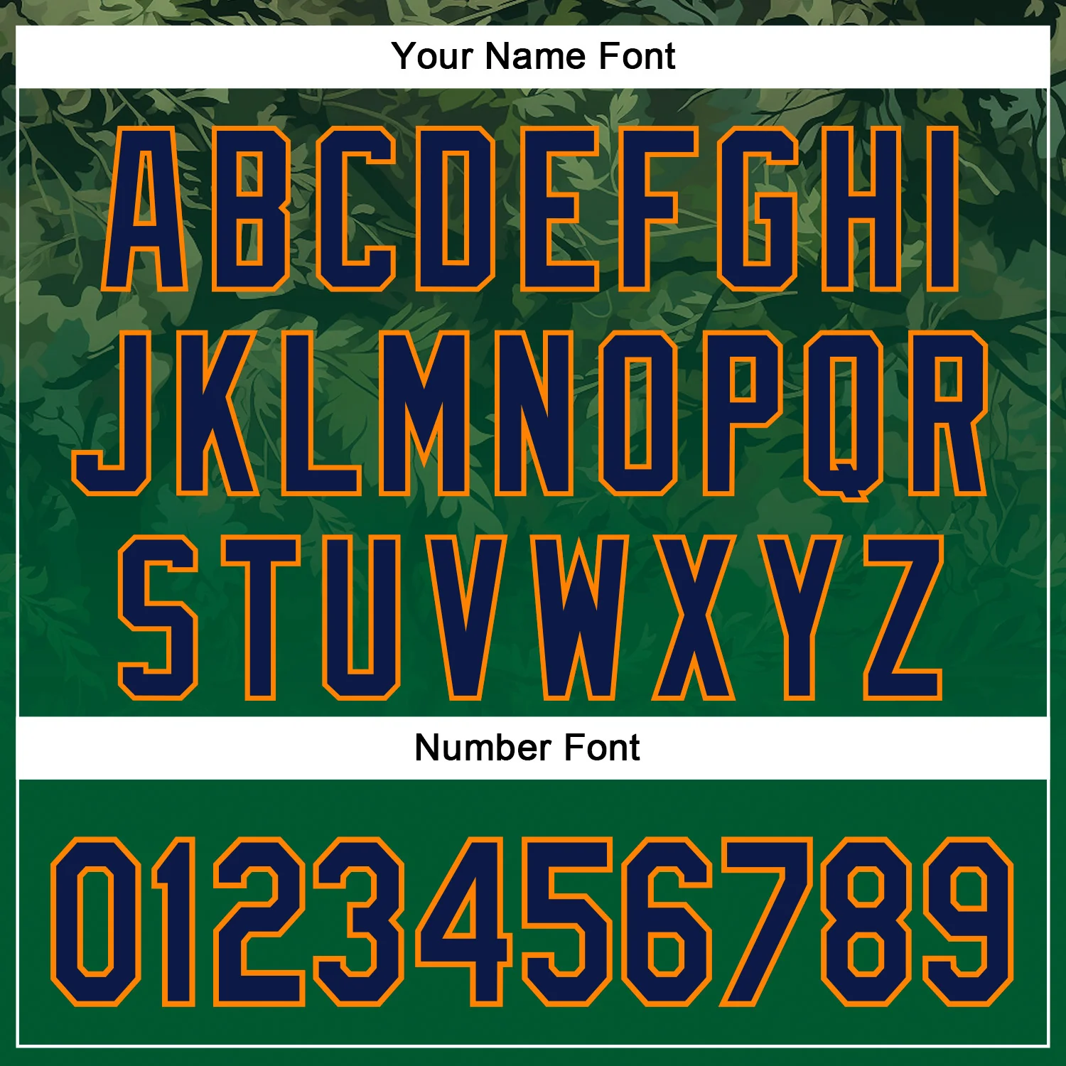 Custom Stitched Green Navy-Bay Orange 3D Pattern Design Tree Camo Hunting Sports Pullover Sweatshirt Hoodie