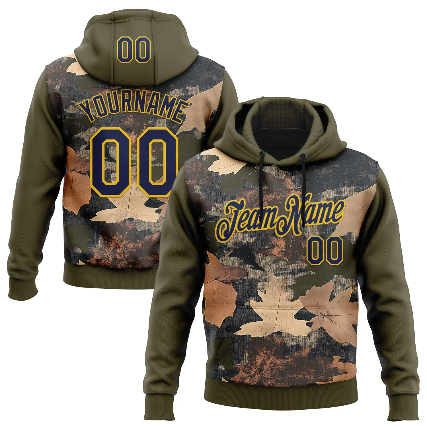 Custom Stitched Olive Navy-Yellow 3D Pattern Design Tree Camo Hunting Sports Pullover Sweatshirt Salute To Service Hoodie