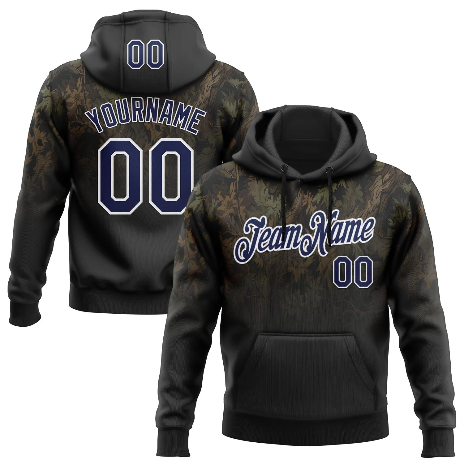 Custom Stitched Black Navy-White 3D Pattern Design Tree Camo Hunting Sports Pullover Sweatshirt Hoodie