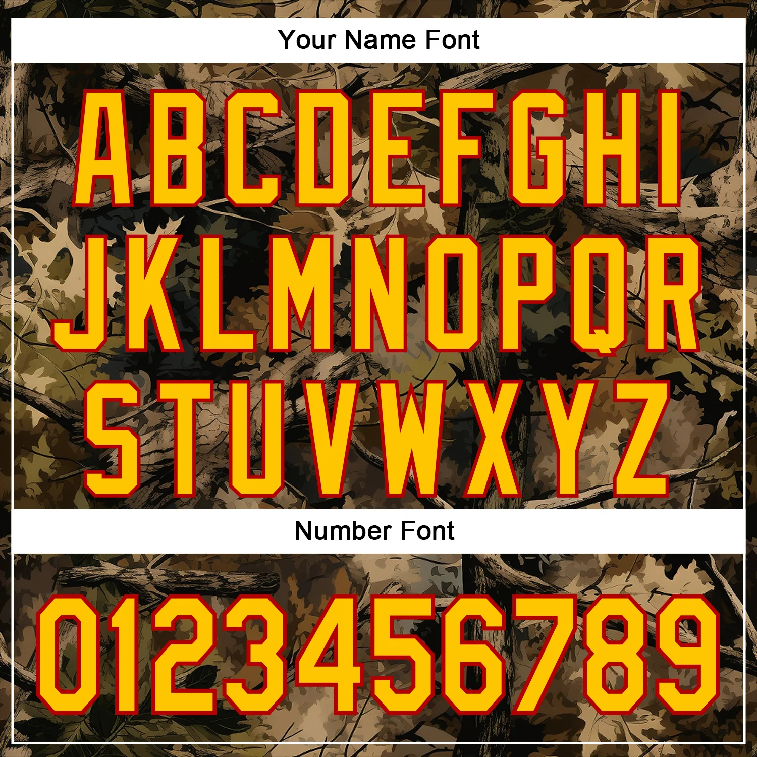 Custom Stitched Black Yellow-Red 3D Pattern Design Tree Camo Hunting Sports Pullover Sweatshirt Hoodie