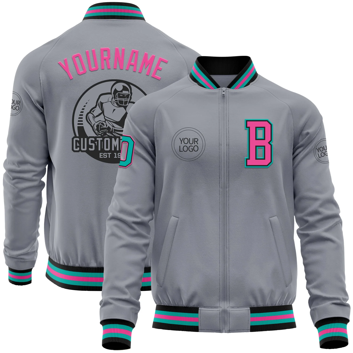Custom Gray Aqua Black-Pink Bomber Varsity Letterman Zipper Jacket