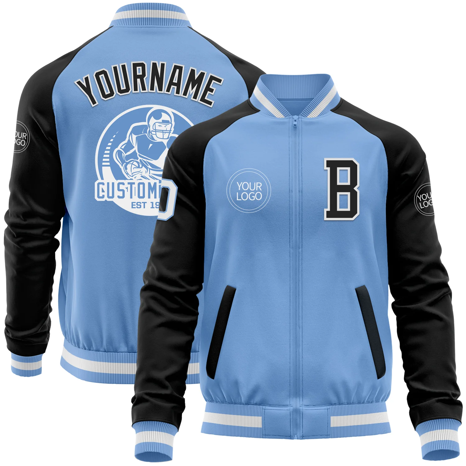 Custom Light Blue White-Black Bomber Varsity Letterman Two Tone Zipper Jacket