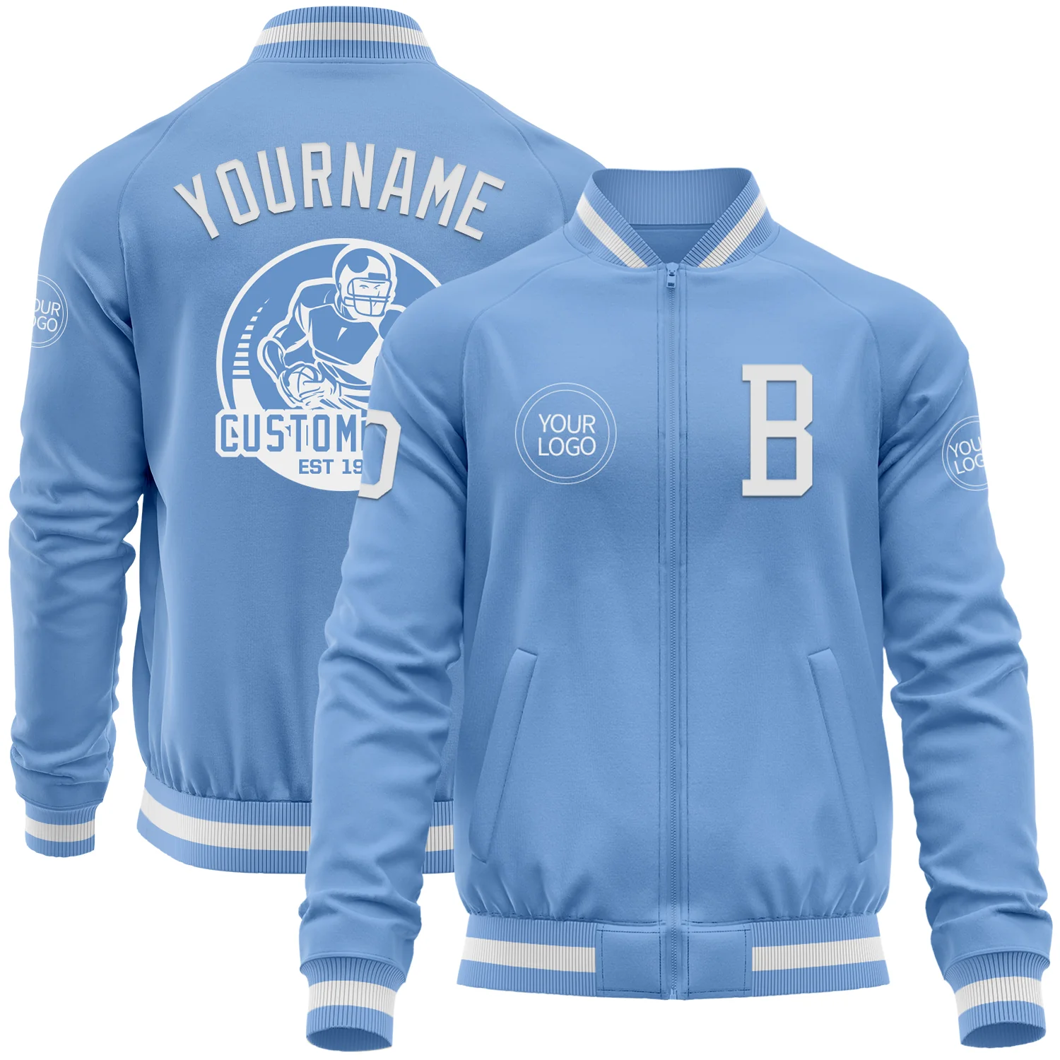 Custom Light Blue White Bomber Varsity Letterman Zipper Jacket