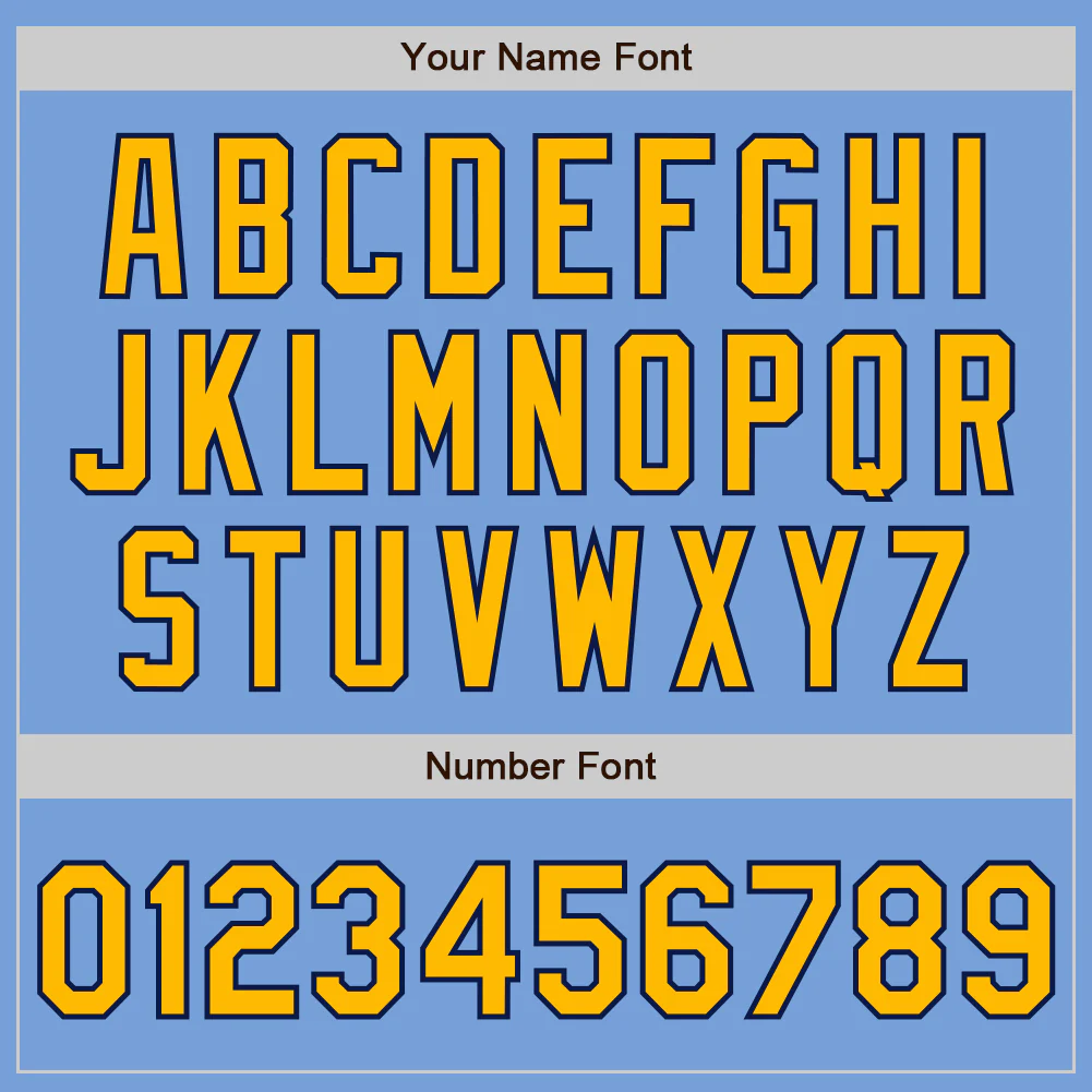 Custom Light Blue Gold-Navy Bomber Varsity Letterman Zipper Jacket