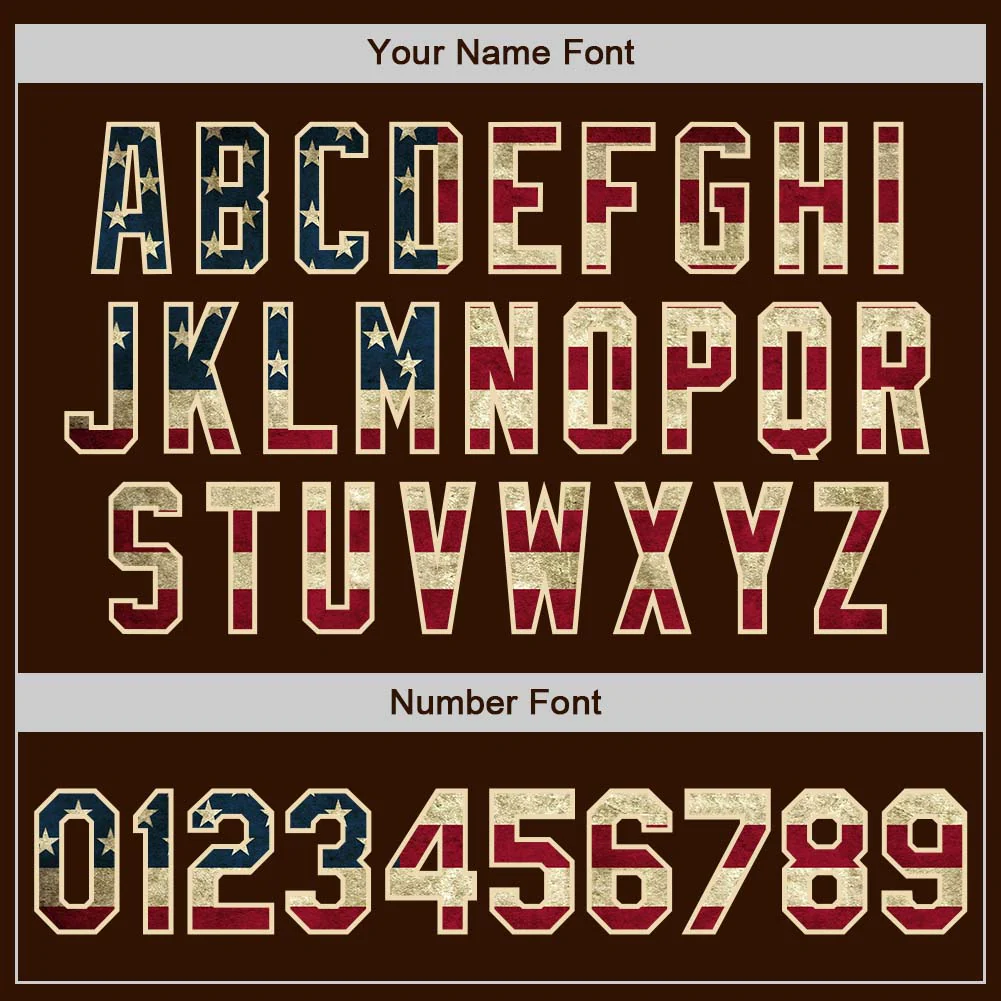 Custom Brown Vintage USA Flag Cream-Maroon Bomber Varsity Letterman Zipper Jacket