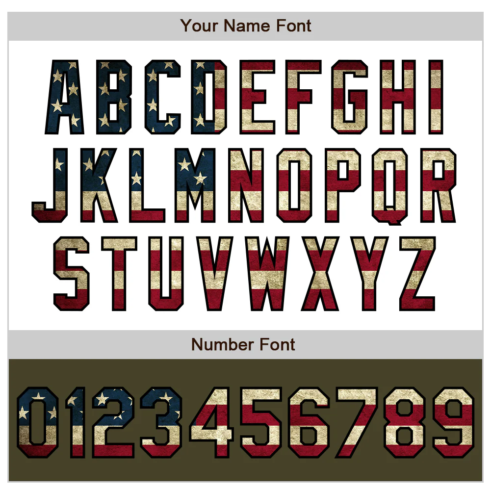 Custom White Vintage USA Flag Black-Olive Bomber Varsity Letterman Two Tone Zipper Jacket