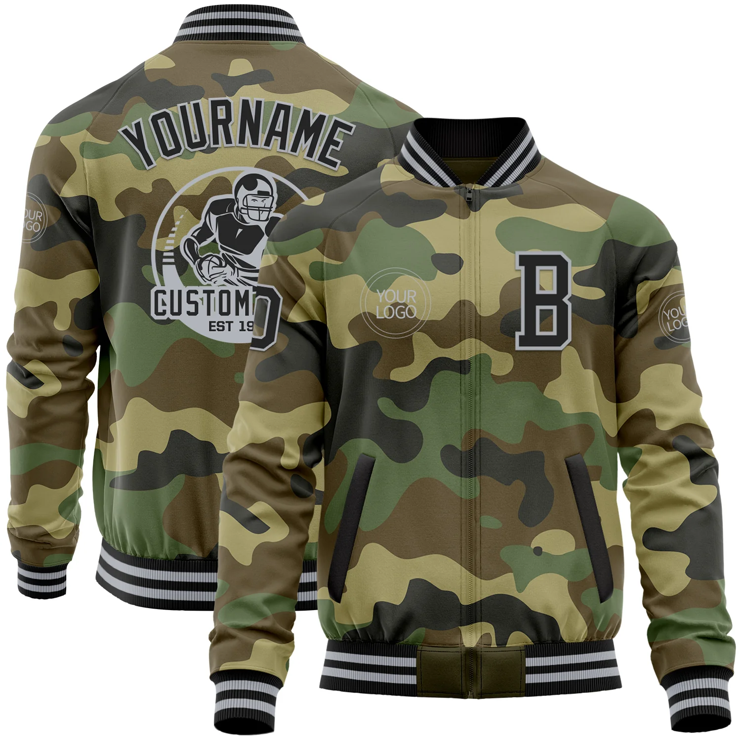 Custom Camo Black-White Bomber Varsity Letterman Salute To Service Zipper Jacket