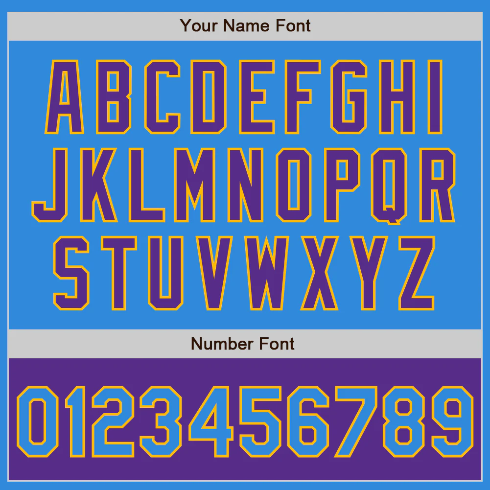 Custom Powder Blue Gold-Purple Bomber Varsity Letterman Two Tone Zipper Jacket