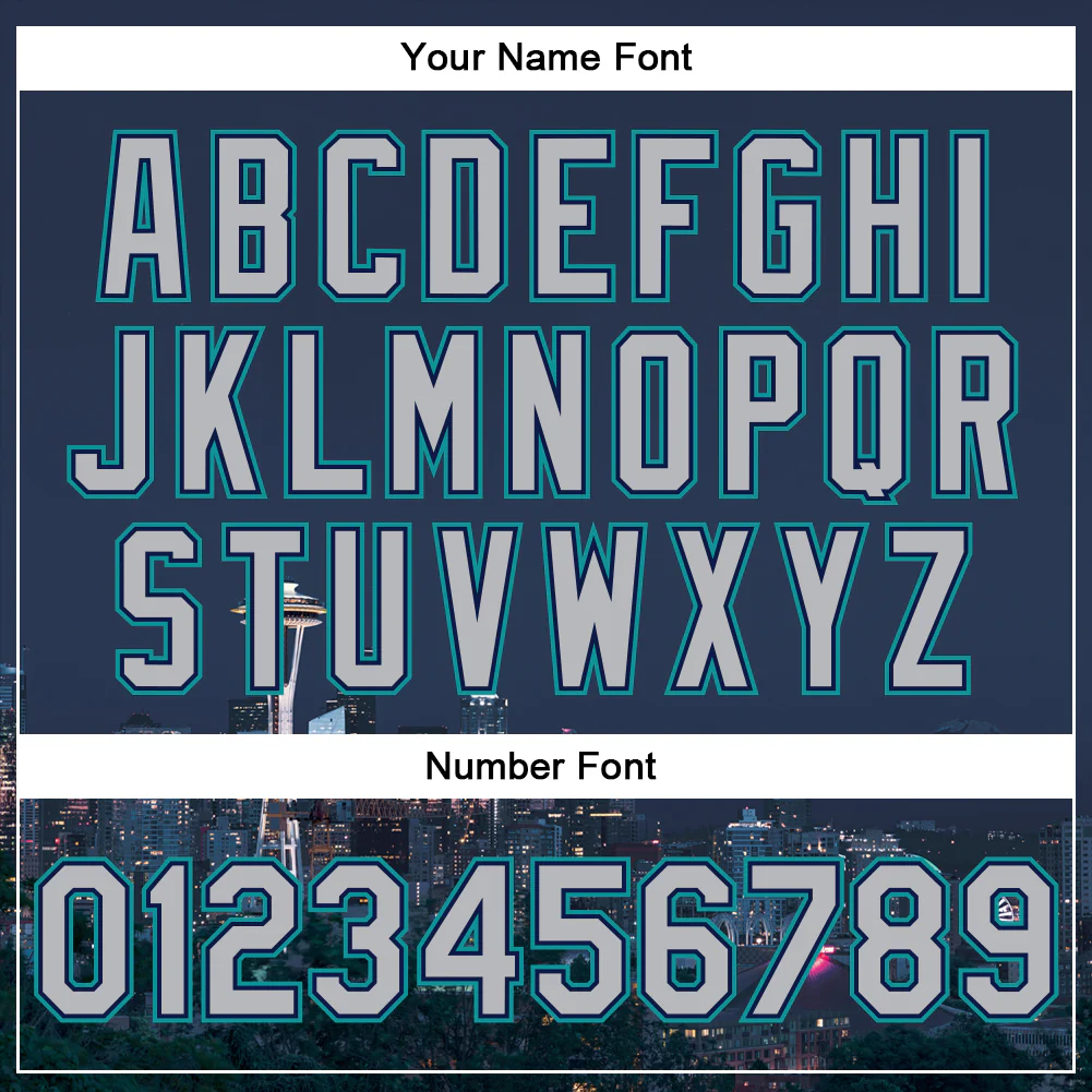 Custom Navy Gray-Teal Seattle Washington City Edition 3D Bomber Full-Snap Varsity Letterman Jacket
