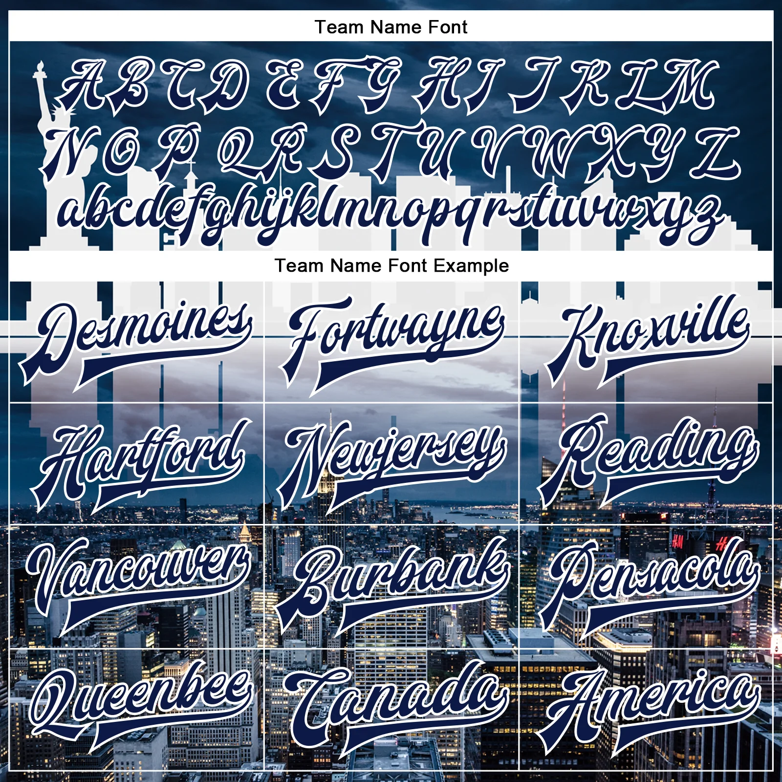 Custom Navy White New York City Edition 3D Bomber Full-Snap Varsity Letterman Jacket