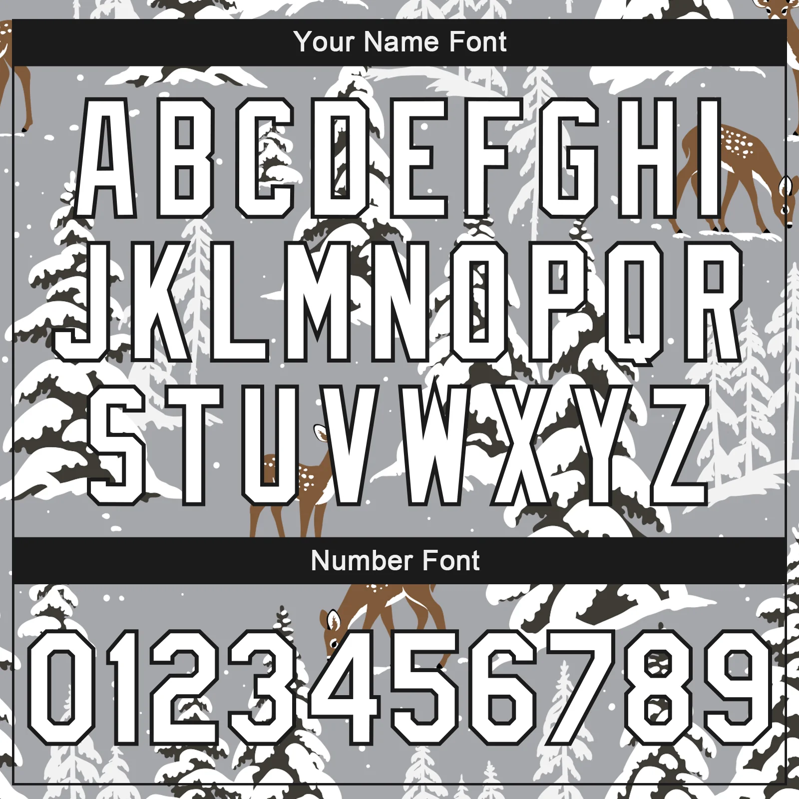 Custom Gray Black-White Winter Snowy Landscape With Deer 3D Pattern Design Bomber Full-Snap Varsity Letterman Jacket