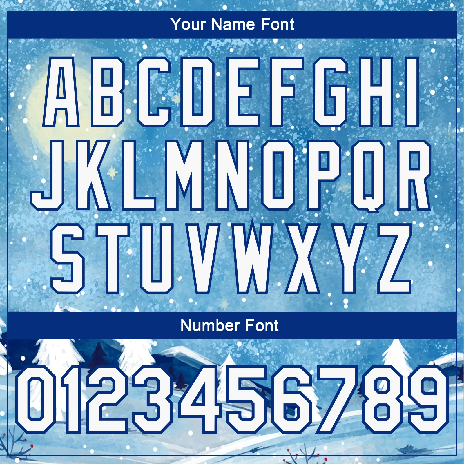 Custom Royal Orange-White Lovely Winter Landscape With Snowy Trees 3D Pattern Design Bomber Full-Snap Varsity Letterman Jacket