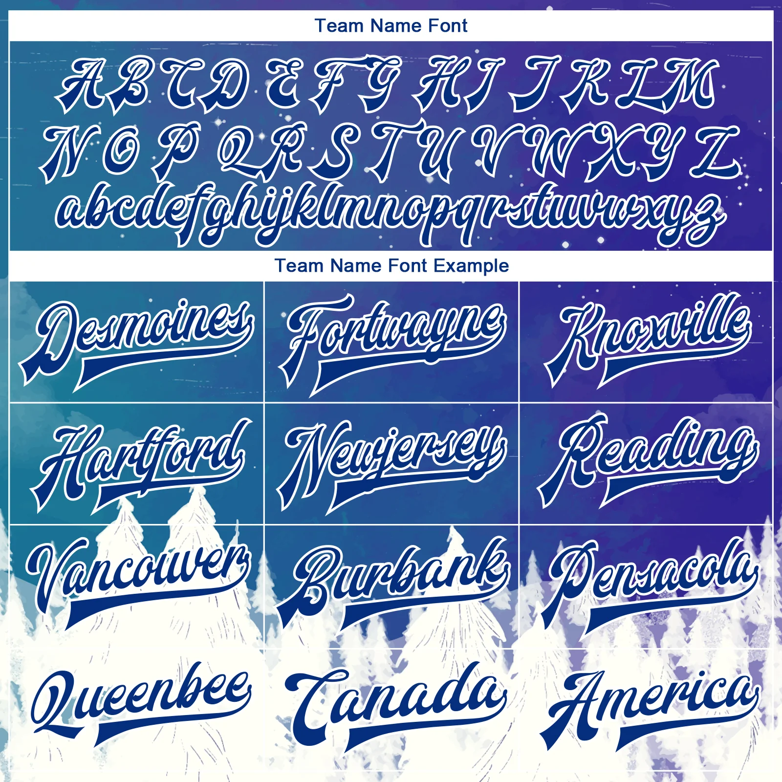 Custom Royal White Watercolor Winter Landscape With Snowy Trees 3D Pattern Design Bomber Full-Snap Varsity Letterman Jacket