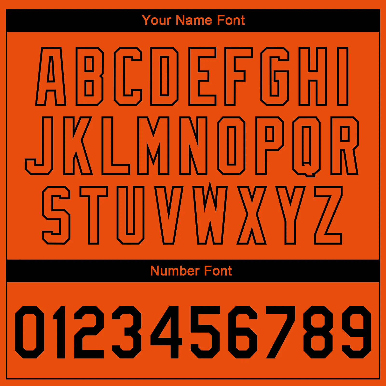 Custom Orange Black 3D Pattern Design Bomber Full-Snap Varsity Letterman Jacket
