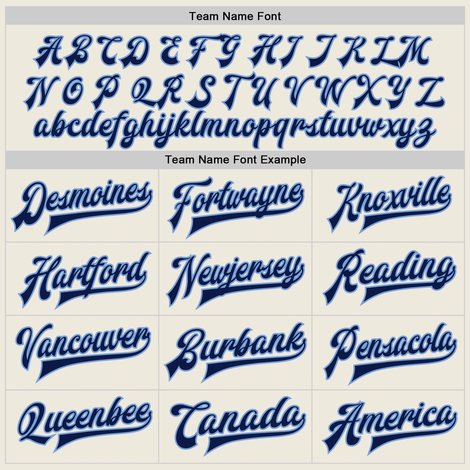 Custom Cream Navy-Light Blue Bomber Full-Snap Varsity Letterman Two Tone Jacket