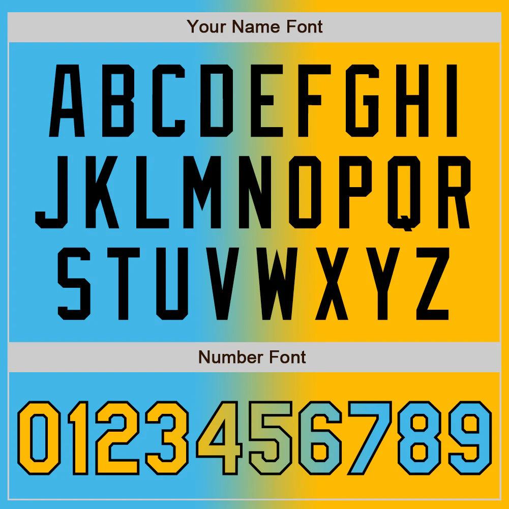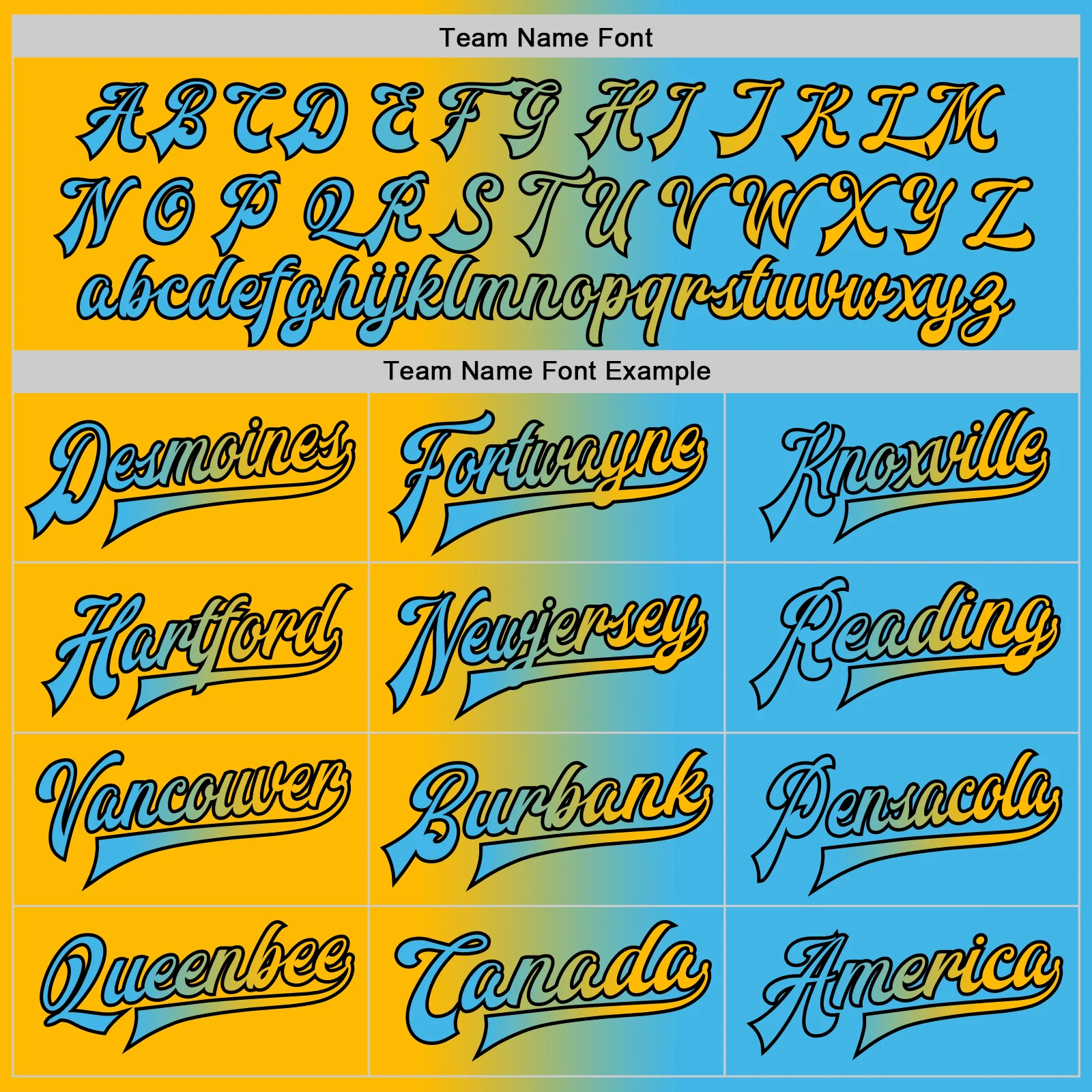 Custom Sky Blue Gold-Black Bomber Full-Snap Varsity Letterman Gradient Fashion Jacket