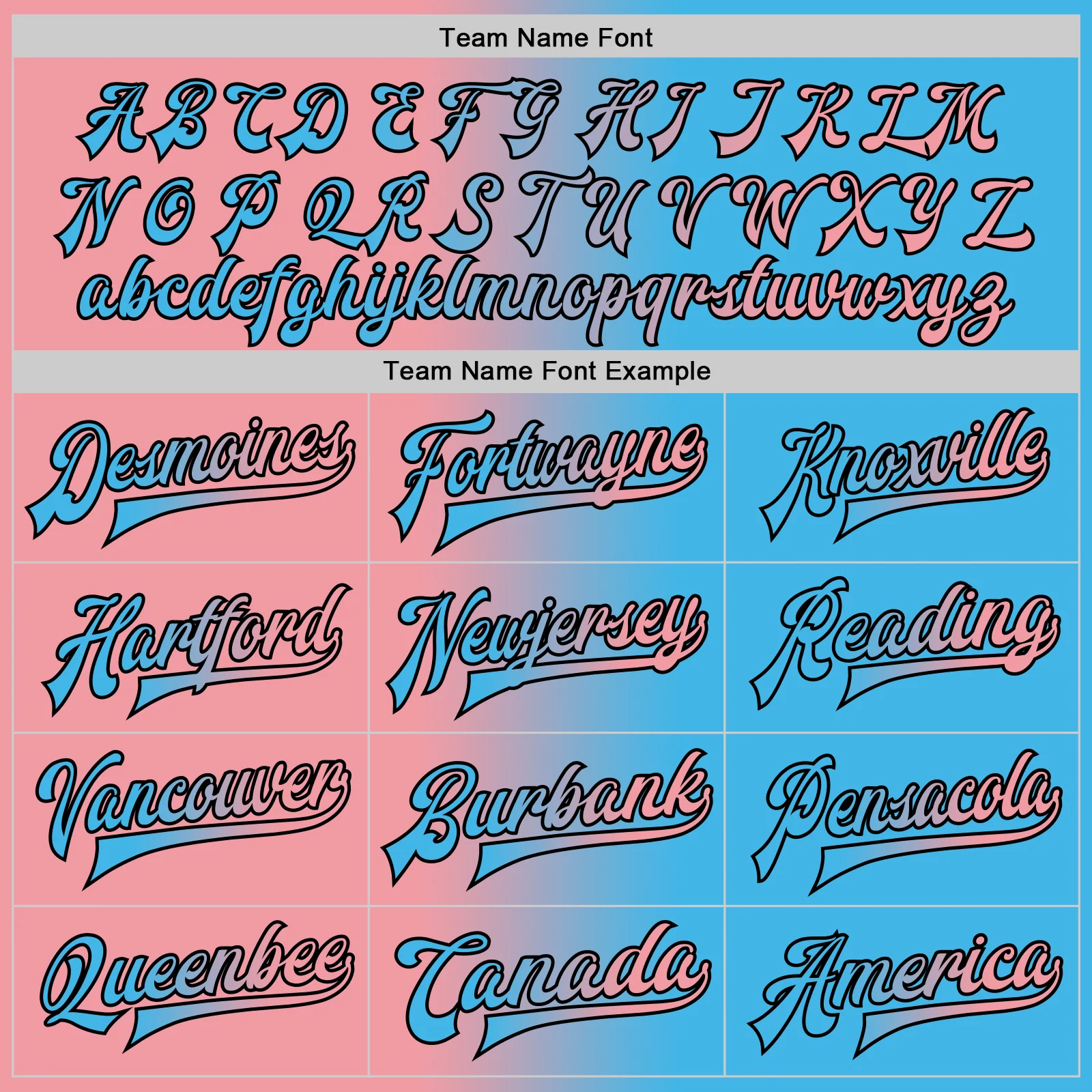 Custom Sky Blue Medium Pink-Black Bomber Full-Snap Varsity Letterman Gradient Fashion Jacket