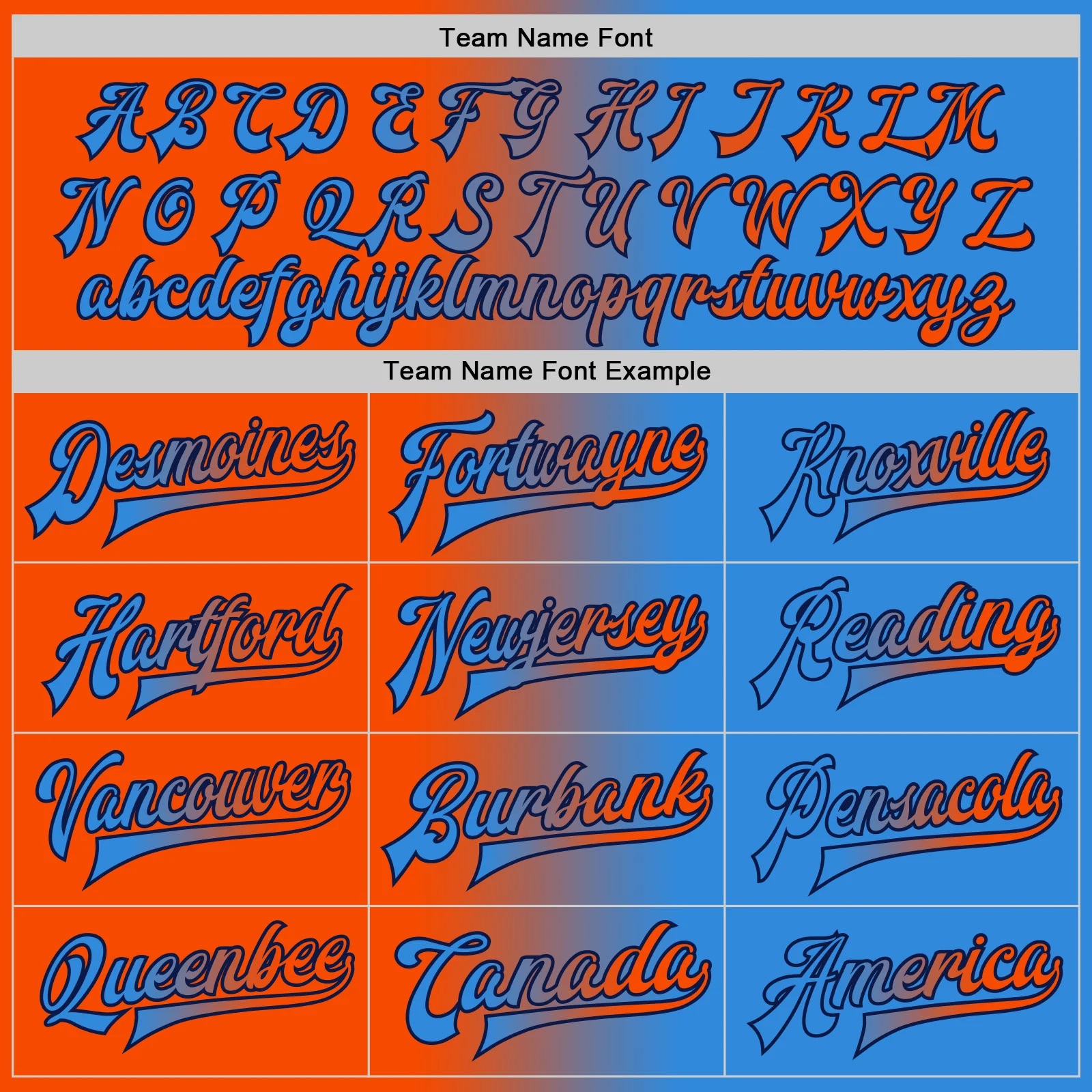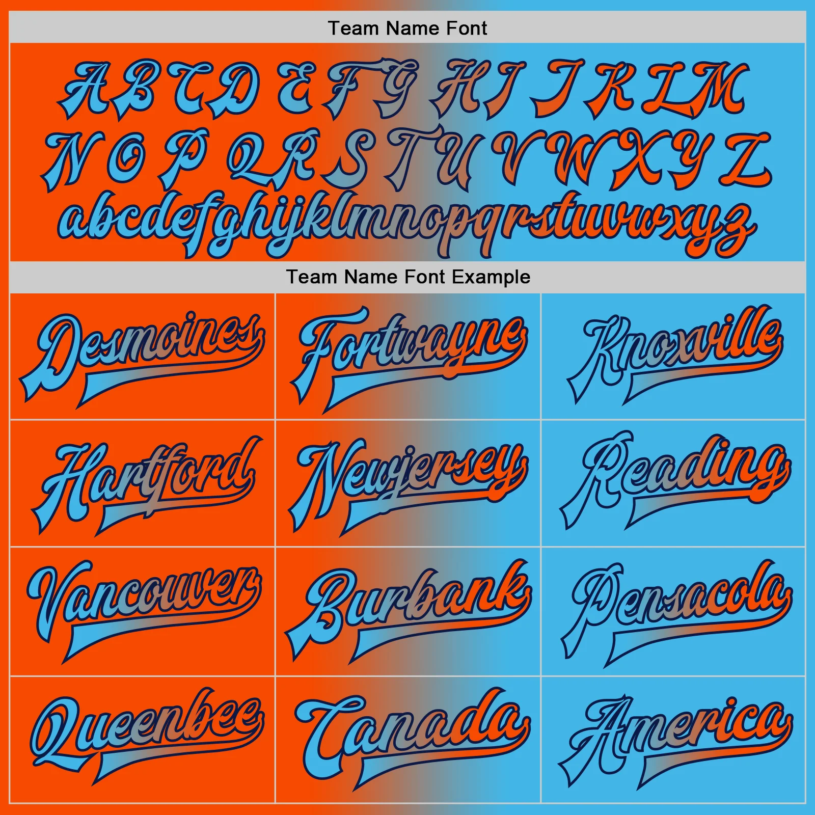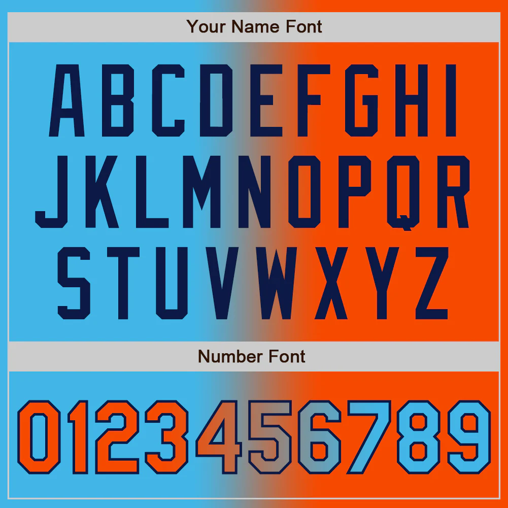 Custom Sky Blue Orange-Navy Bomber Full-Snap Varsity Letterman Gradient Fashion Jacket