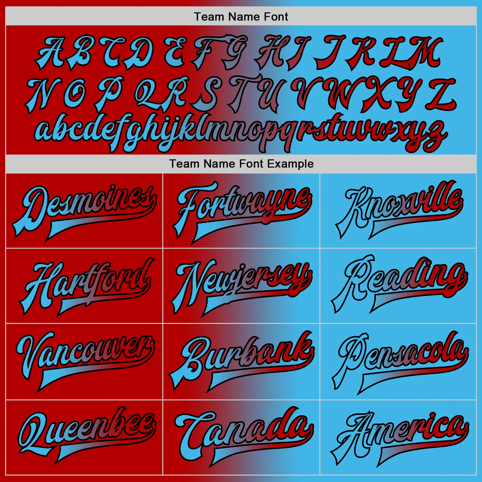 Custom Sky Blue Red-Black Bomber Full-Snap Varsity Letterman Gradient Fashion Jacket
