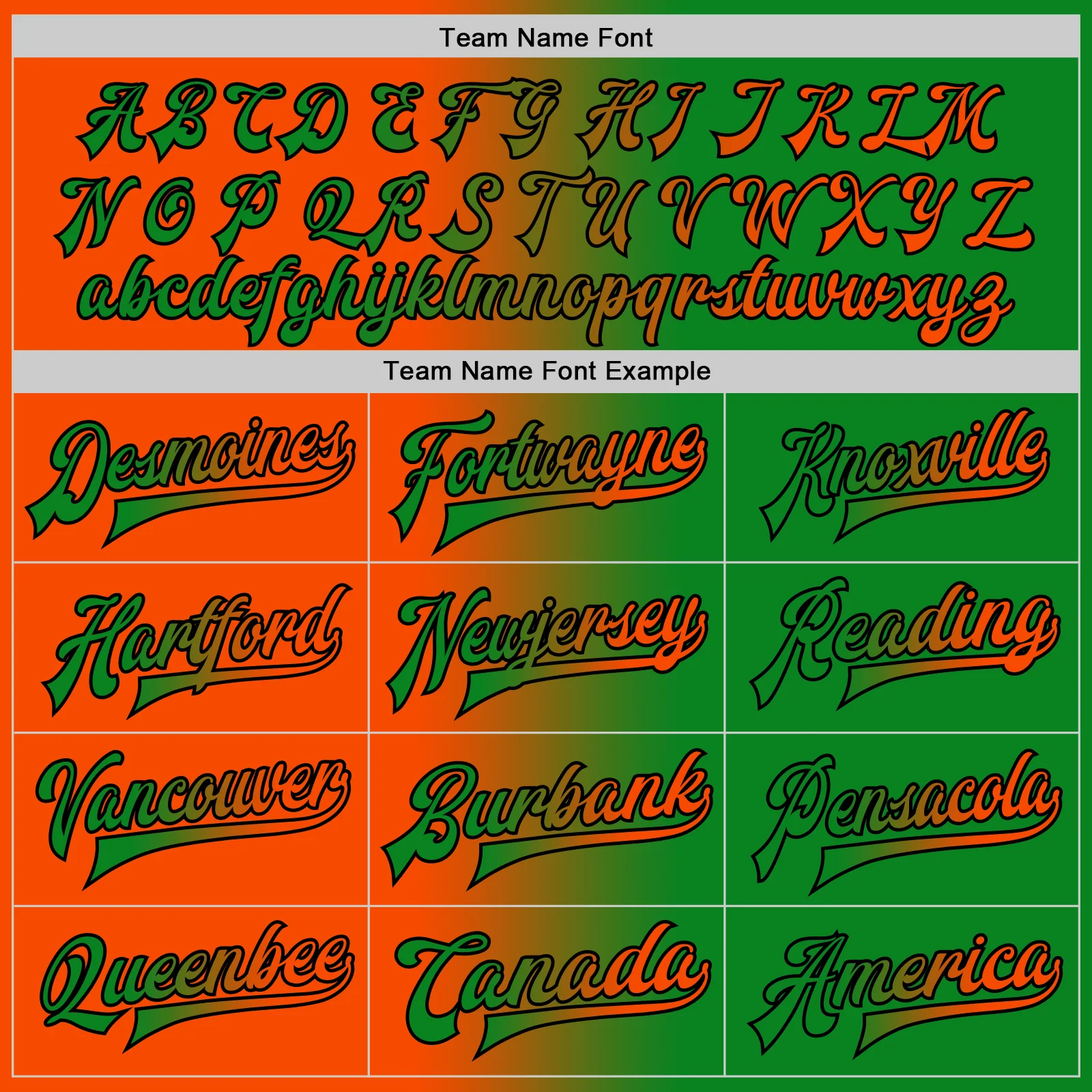 Custom Grass Green Orange-Black Bomber Full-Snap Varsity Letterman Gradient Fashion Jacket