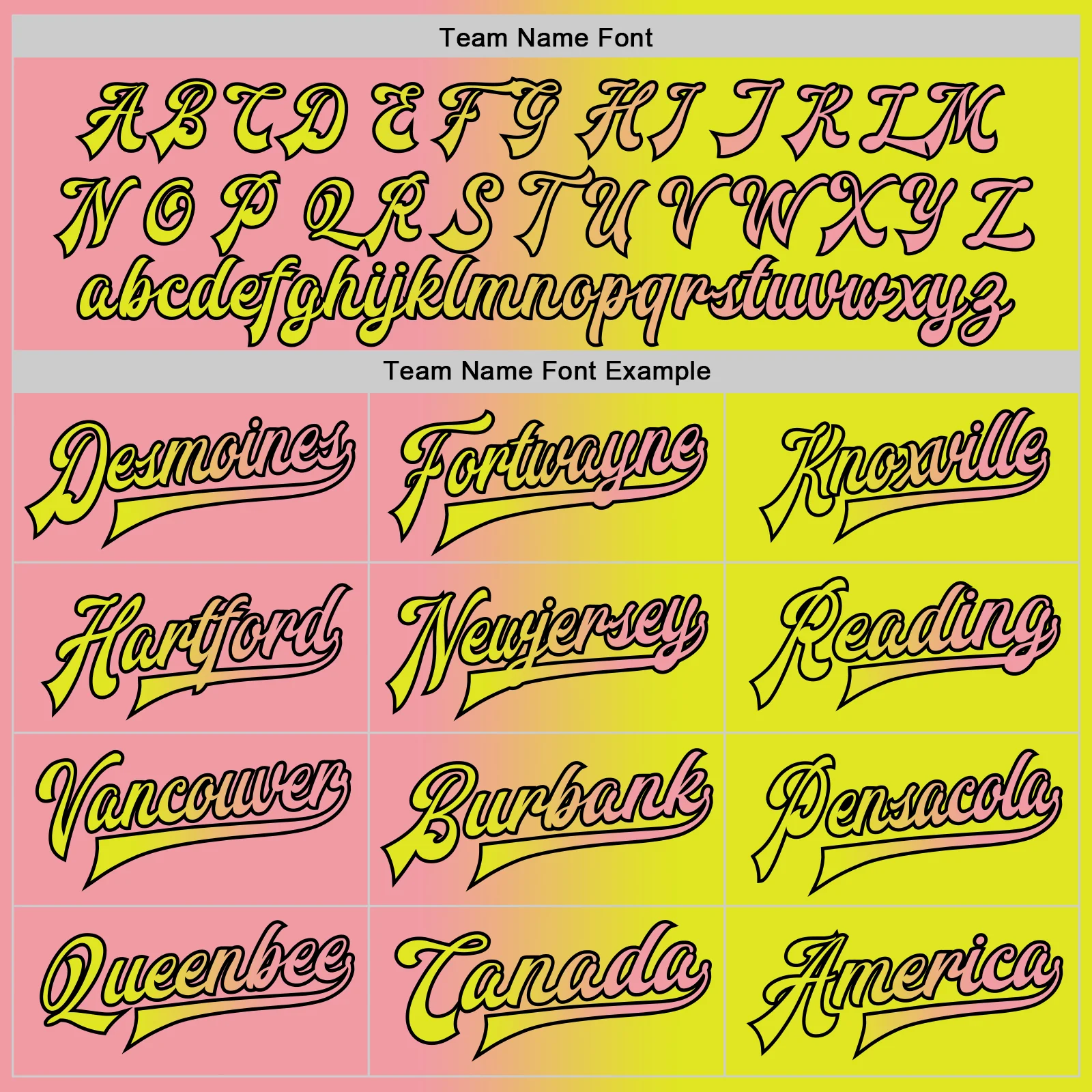 Custom Neon Yellow Medium Pink-Black Bomber Full-Snap Varsity Letterman Gradient Fashion Jacket