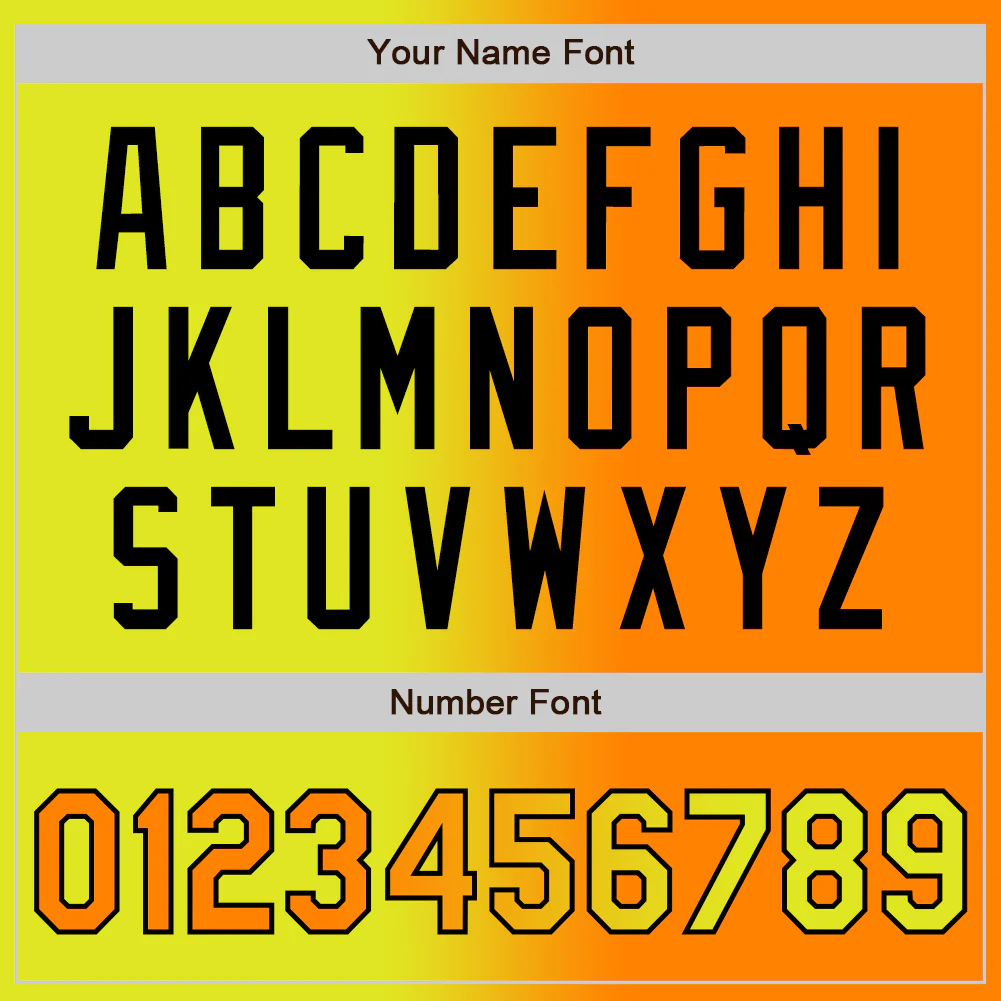 Custom Neon Yellow Bay Orange-Black Bomber Full-Snap Varsity Letterman Gradient Fashion Jacket