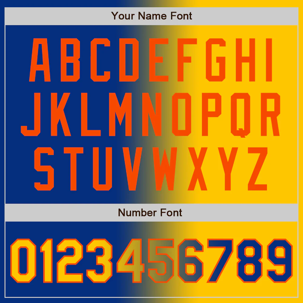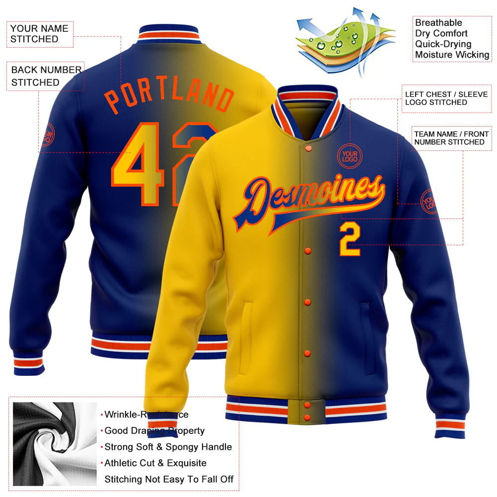 Custom Royal Yellow-Orange Bomber Full-Snap Varsity Letterman Gradient Fashion Jacket