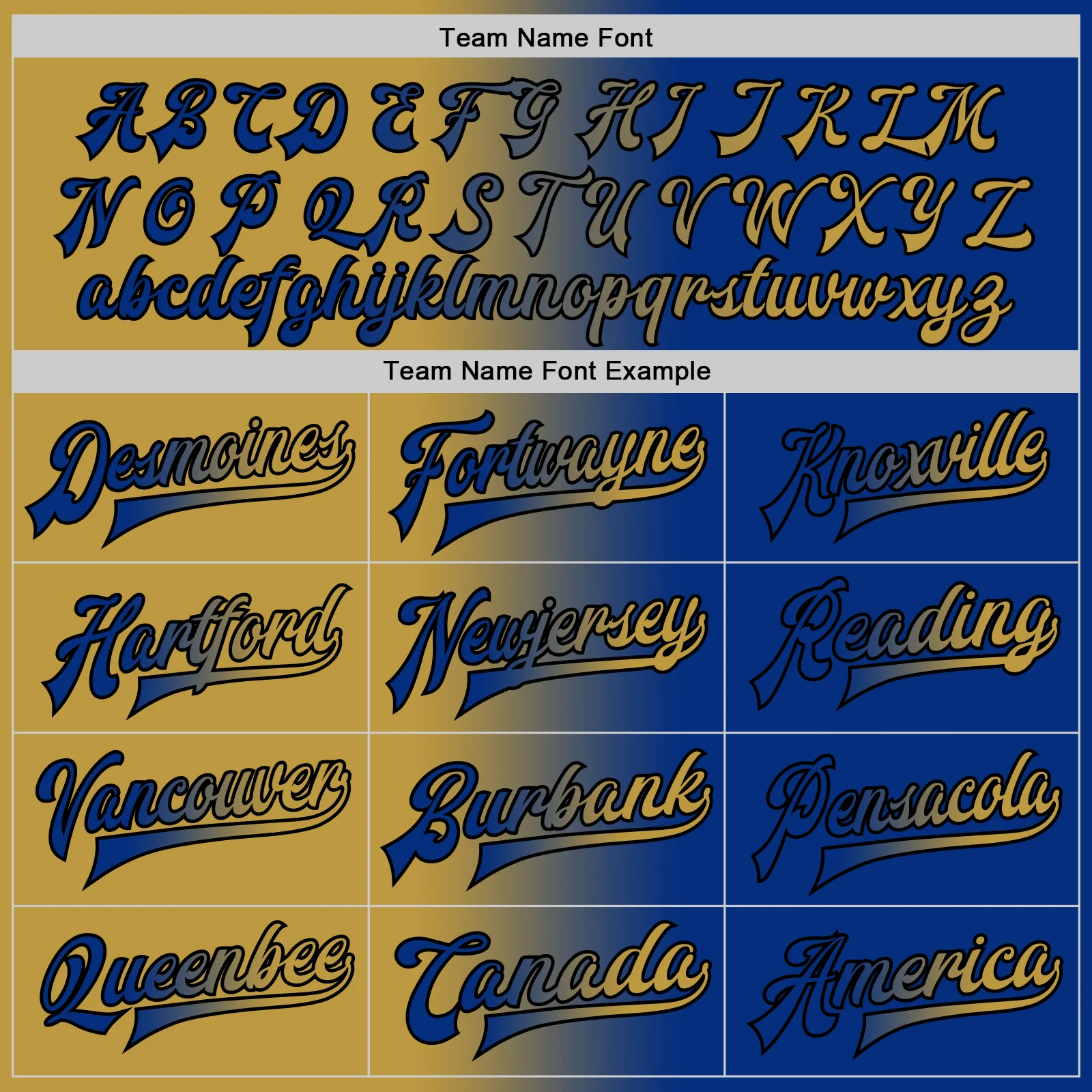 Custom Royal Old Gold-Black Bomber Full-Snap Varsity Letterman Gradient Fashion Jacket