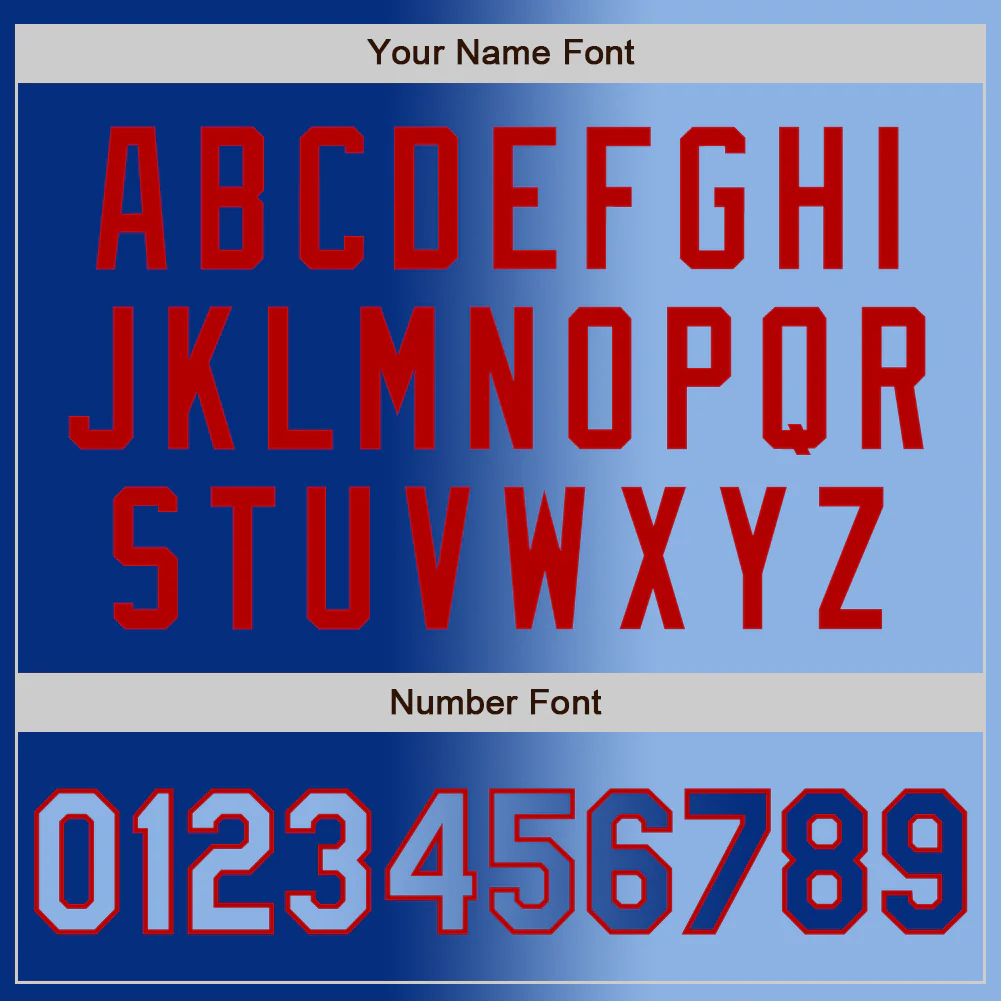 Custom Royal Light Blue-Red Bomber Full-Snap Varsity Letterman Gradient Fashion Jacket