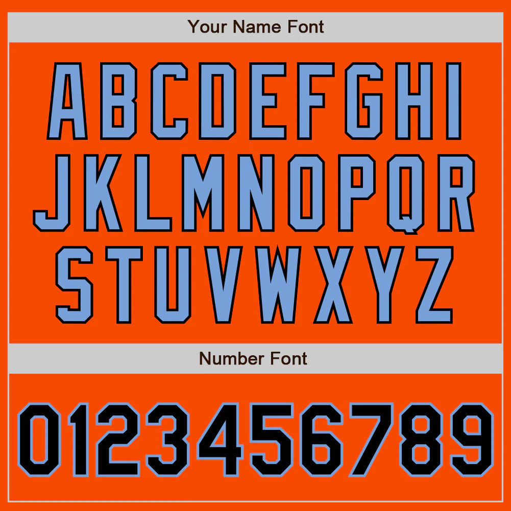 Custom Orange Black-Light Blue Bomber Full-Snap Varsity Letterman Two Tone Jacket