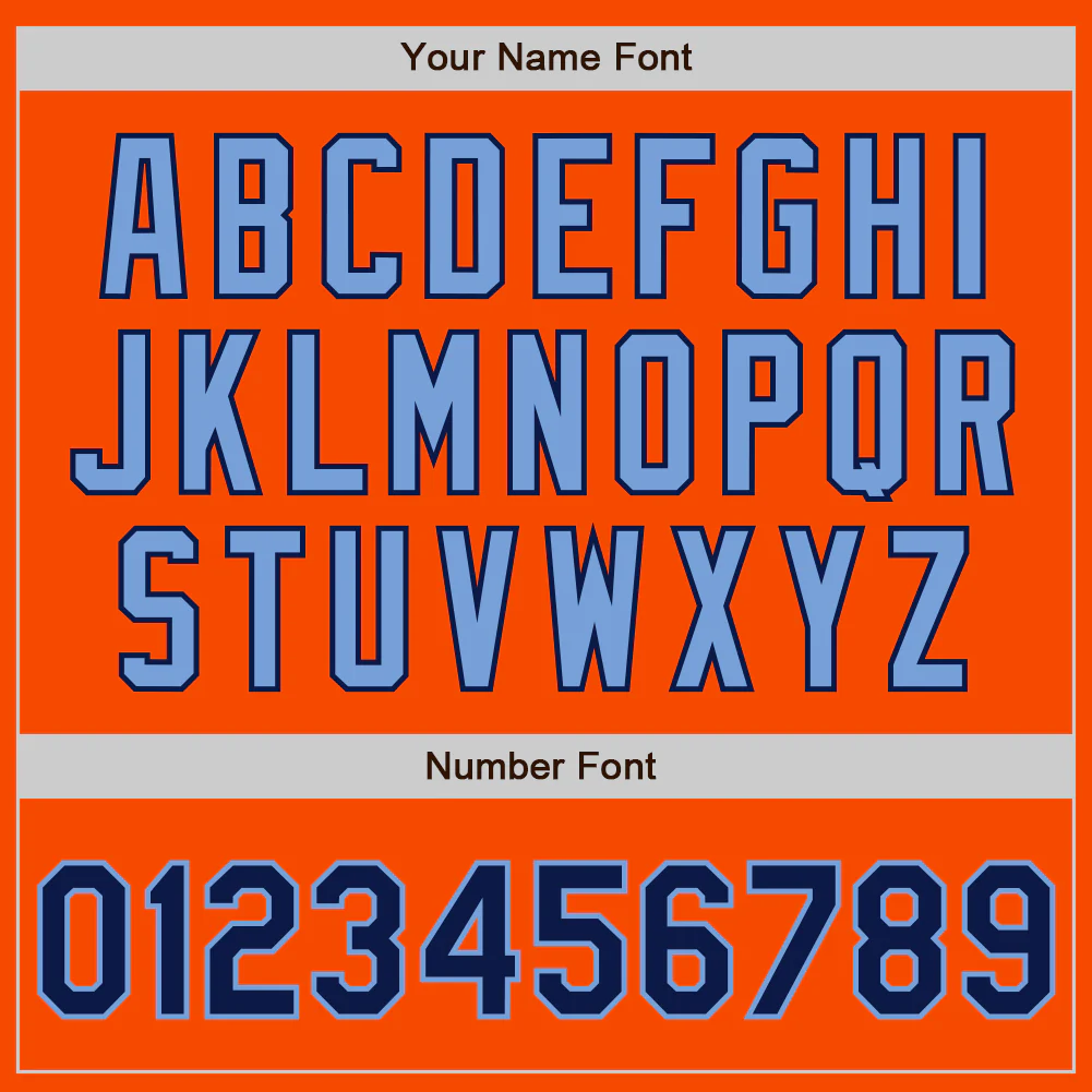 Custom Orange Navy-Light Blue Bomber Full-Snap Varsity Letterman Two Tone Jacket