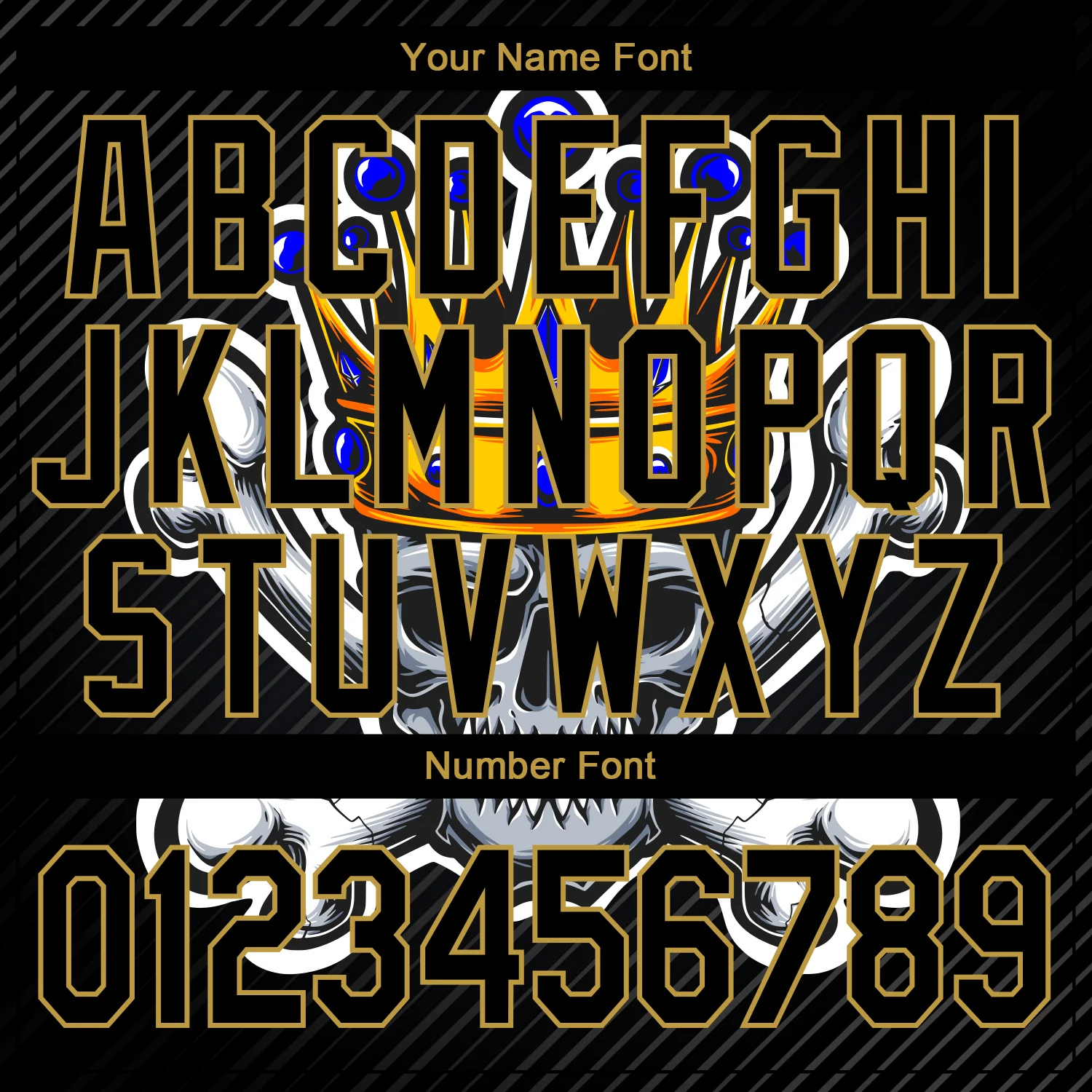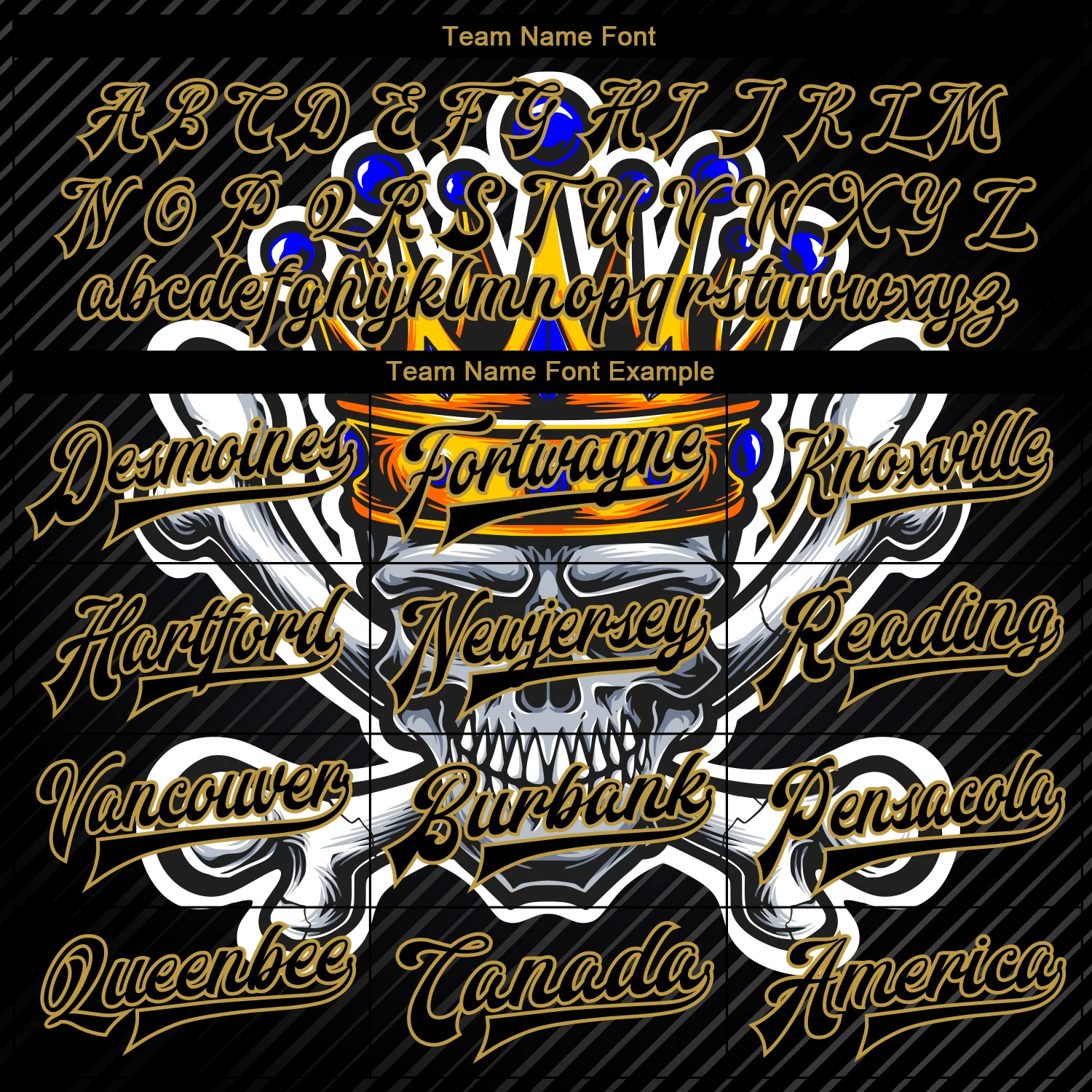 Custom Black Old Gold Skull With Gold Crown And Crossing Bones 3D Bomber Full-Snap Varsity Letterman Jacket