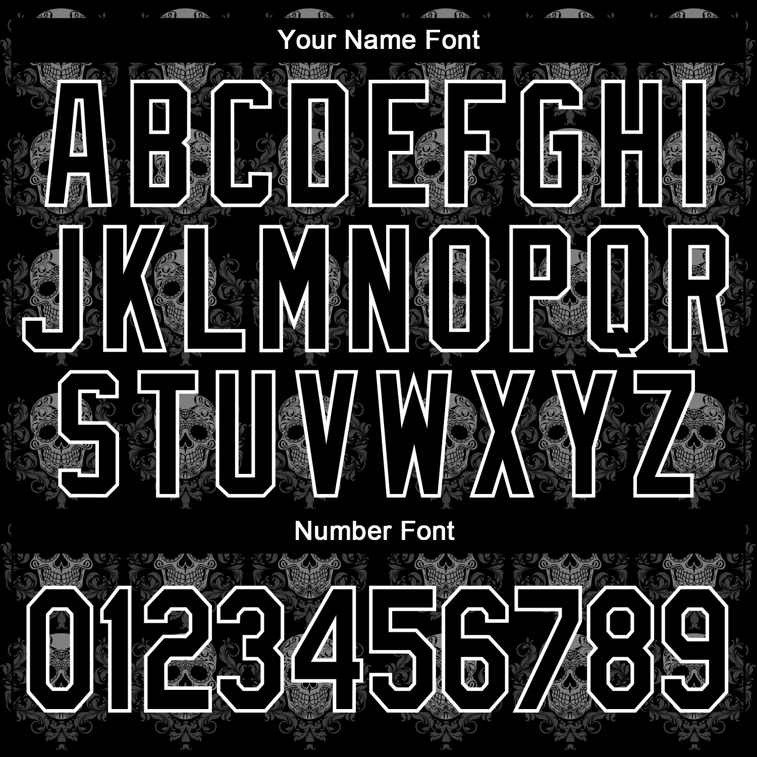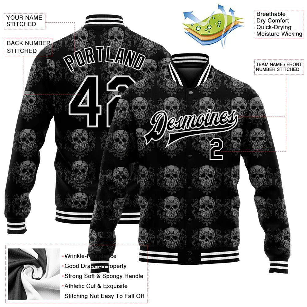 Custom Black White Skull Fashion 3D Bomber Full-Snap Varsity Letterman Jacket