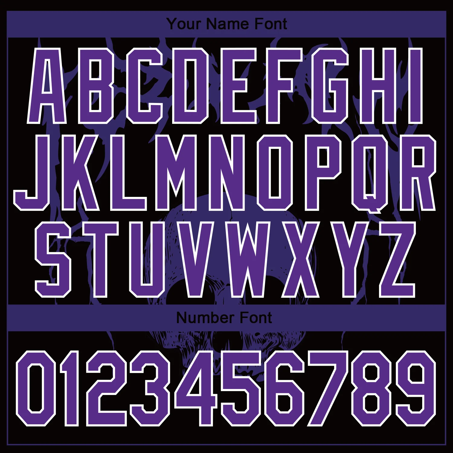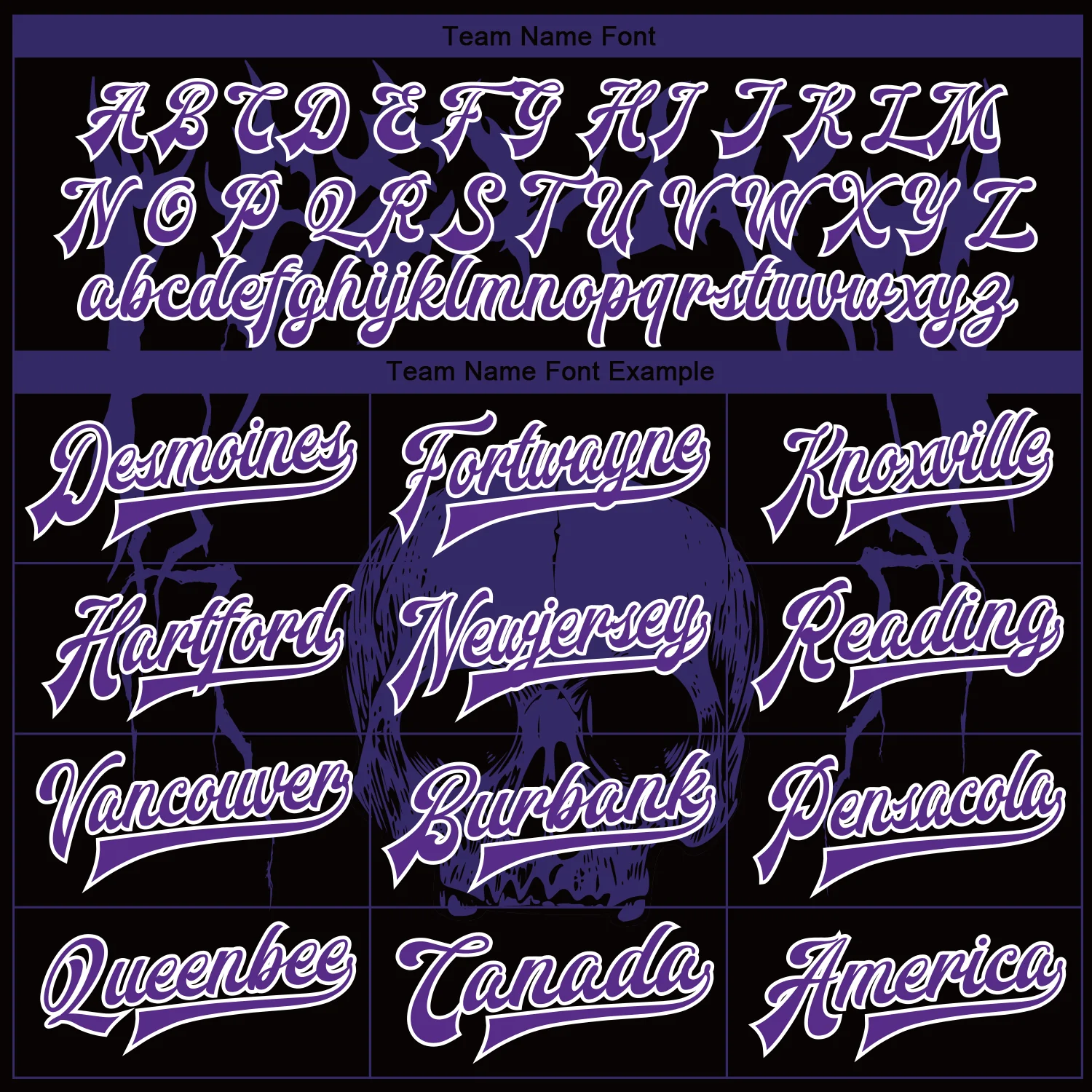 Custom Black Purple-White Skull Fashion 3D Bomber Full-Snap Varsity Letterman Jacket