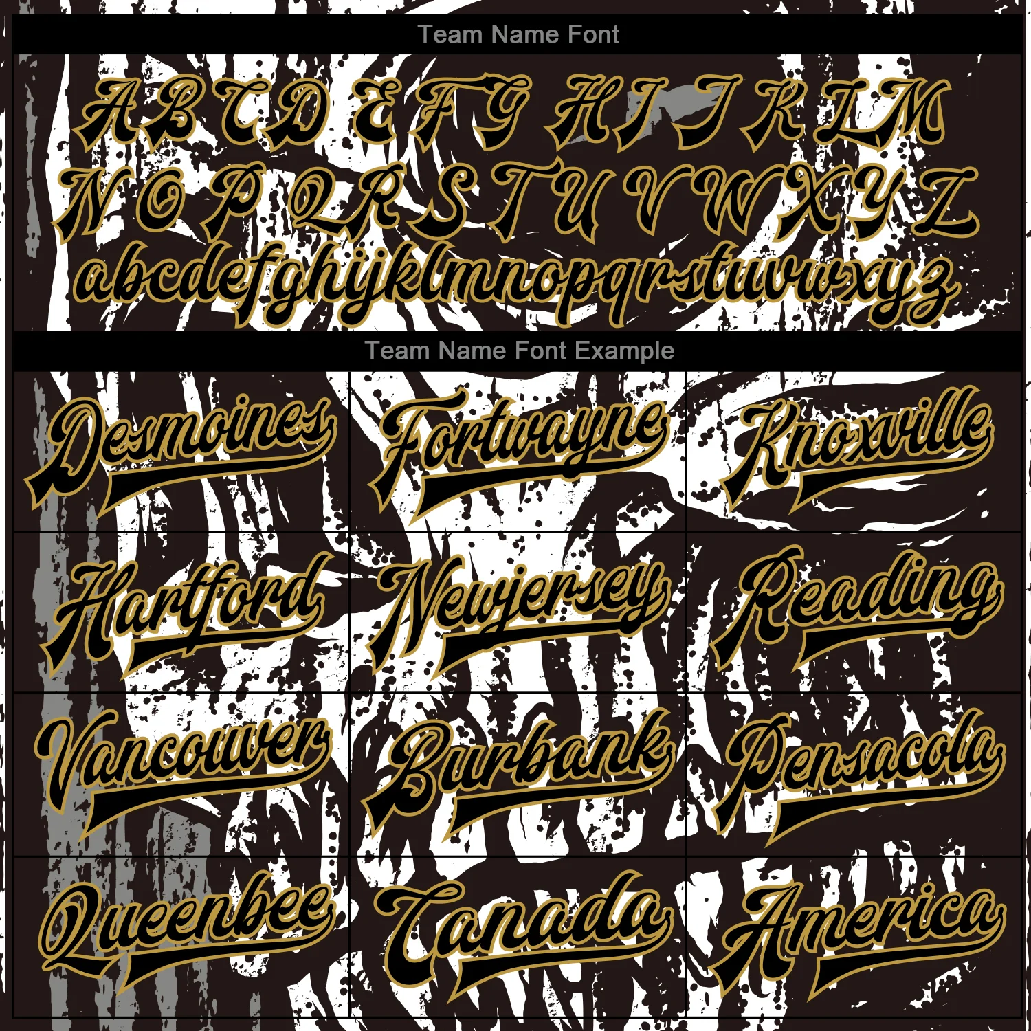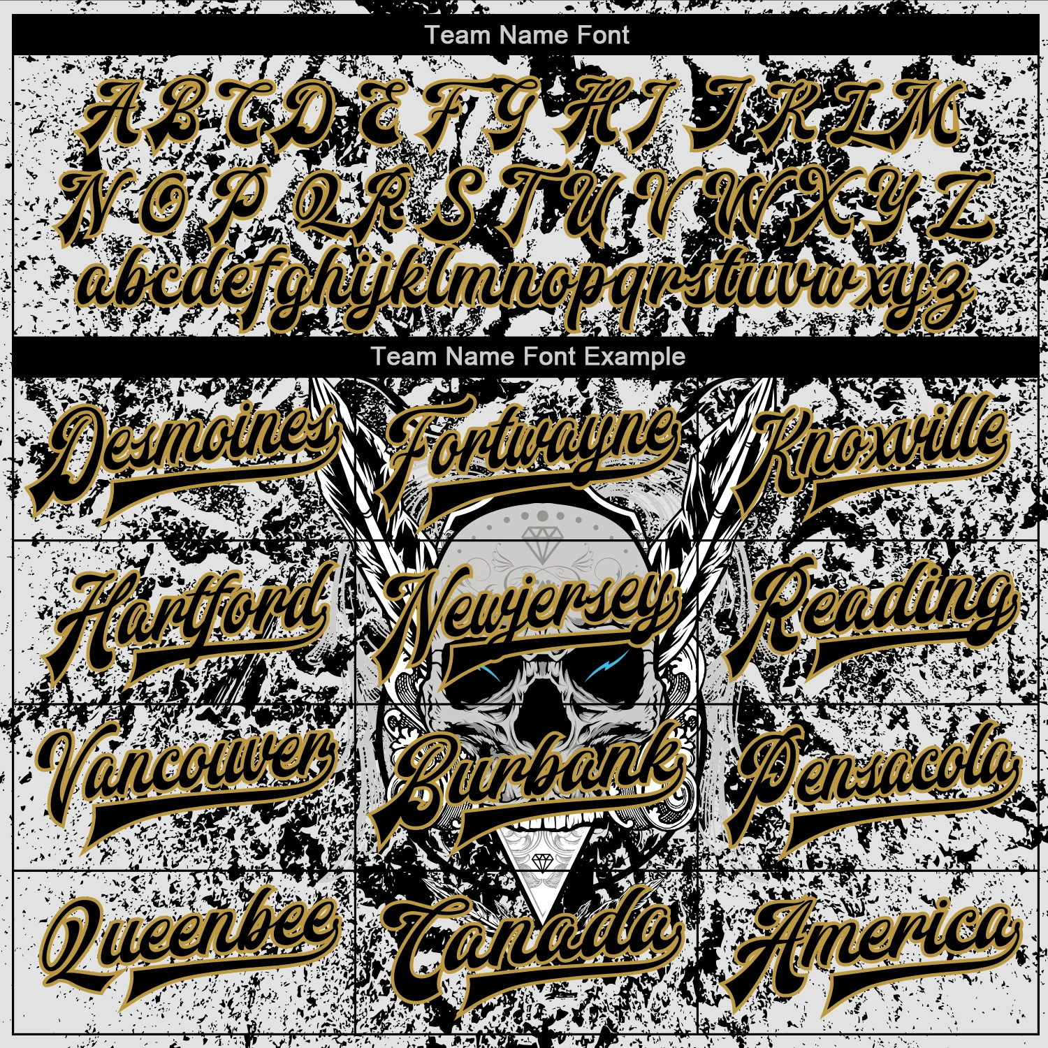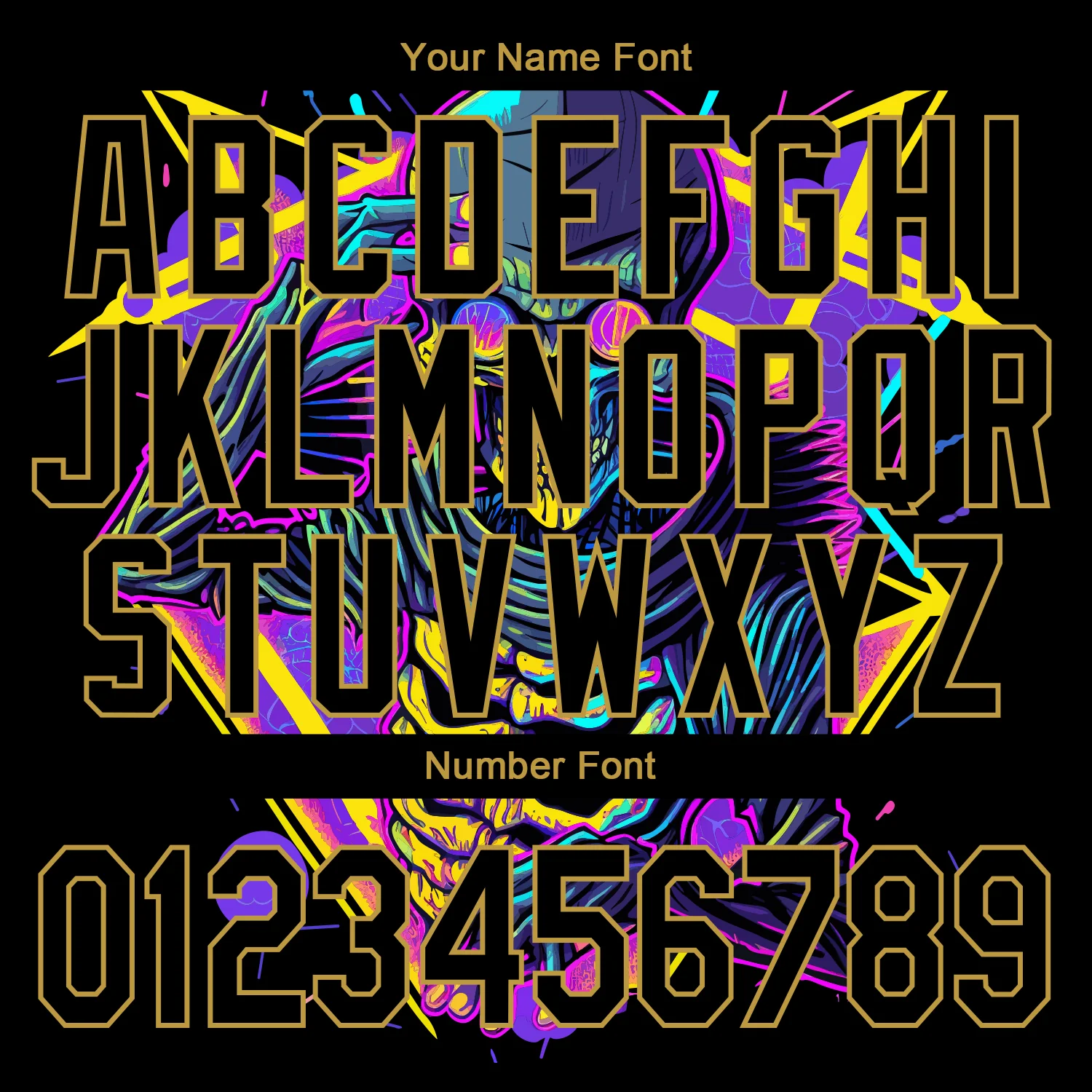 Custom Black Old Gold Psychedelic Skeleton Metal Apparel Dark Art 3D Bomber Full-Snap Varsity Letterman Jacket
