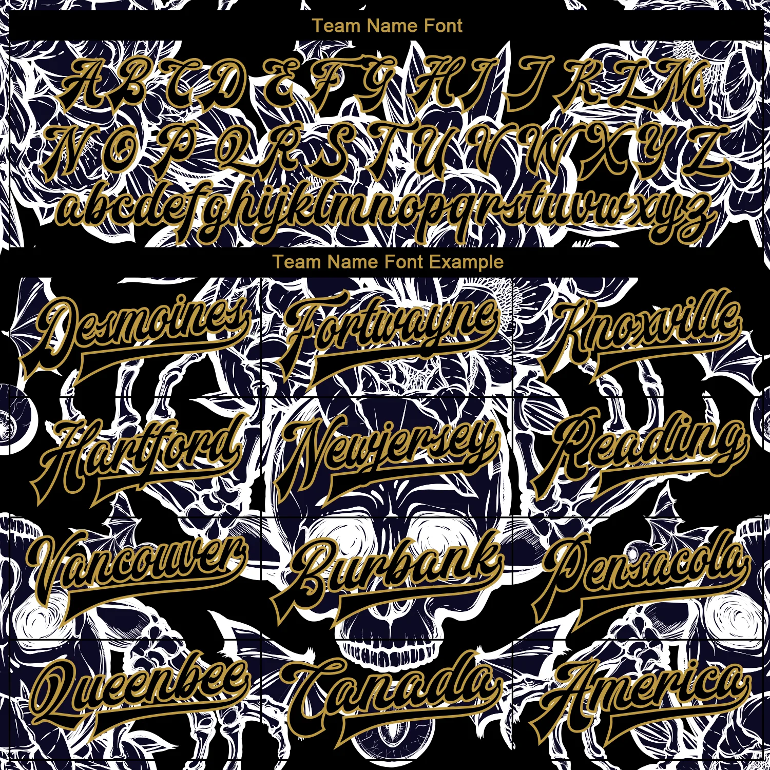 Custom Black Old Gold Skull Fashion 3D Bomber Full-Snap Varsity Letterman Jacket