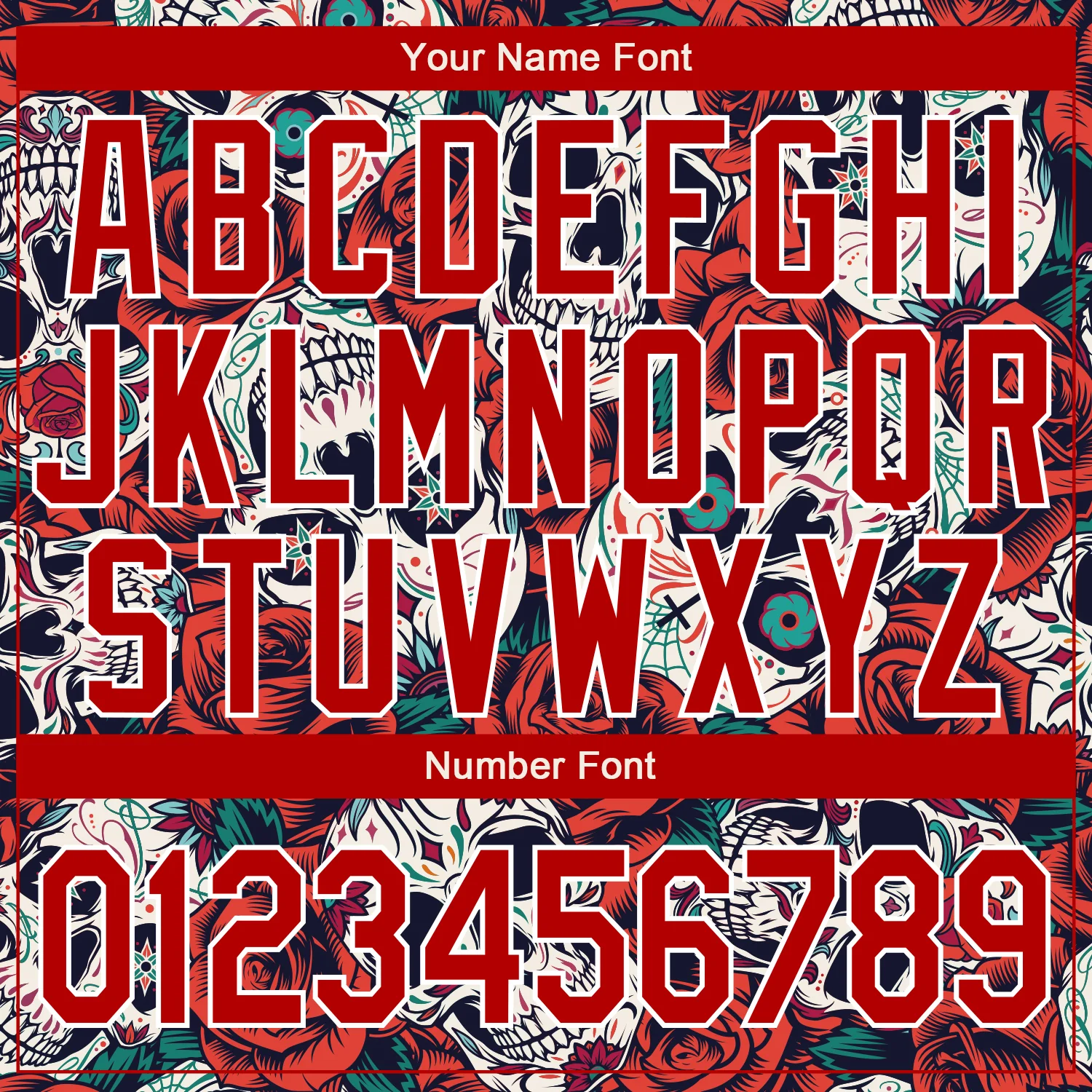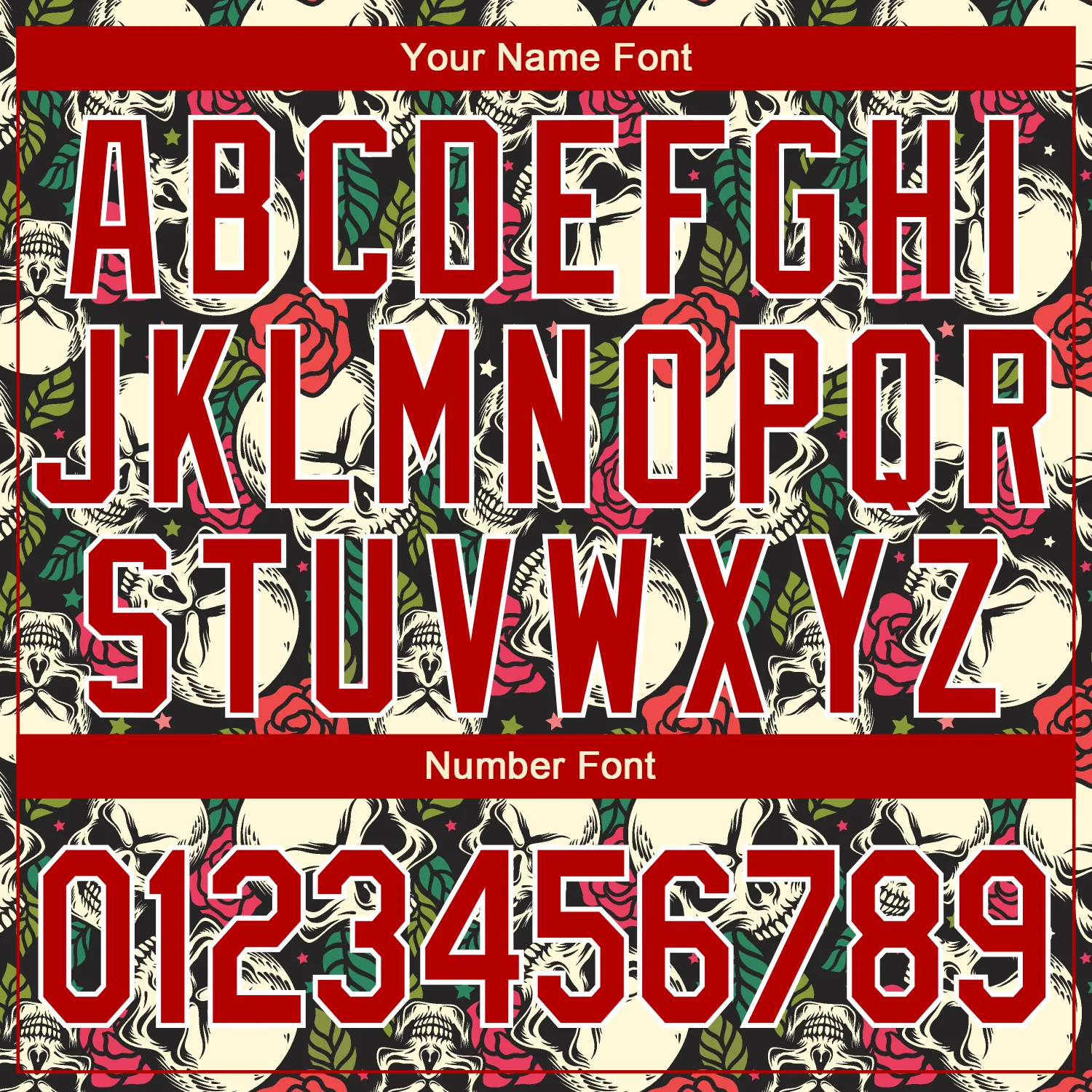 Custom Black Red-White Skull With Flower 3D Bomber Full-Snap Varsity Letterman Jacket