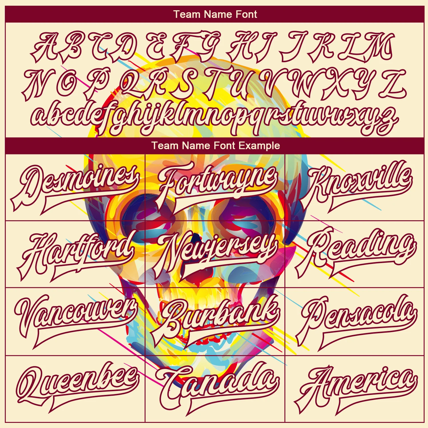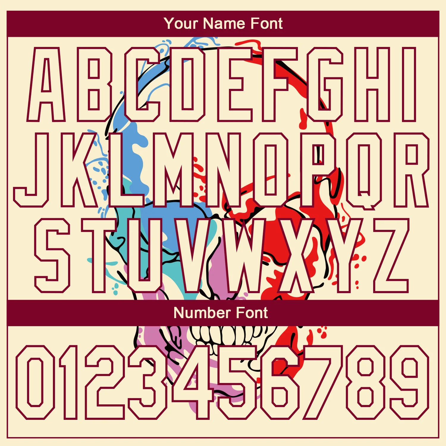 Custom Cream Maroon Skull Fashion 3D Bomber Full-Snap Varsity Letterman Jacket
