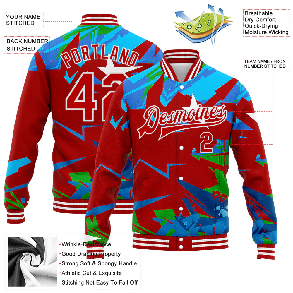 Custom Graffiti Pattern Red-White Hiphop Abstract Urban Street Art 3D Bomber Full-Snap Varsity Letterman Jacket