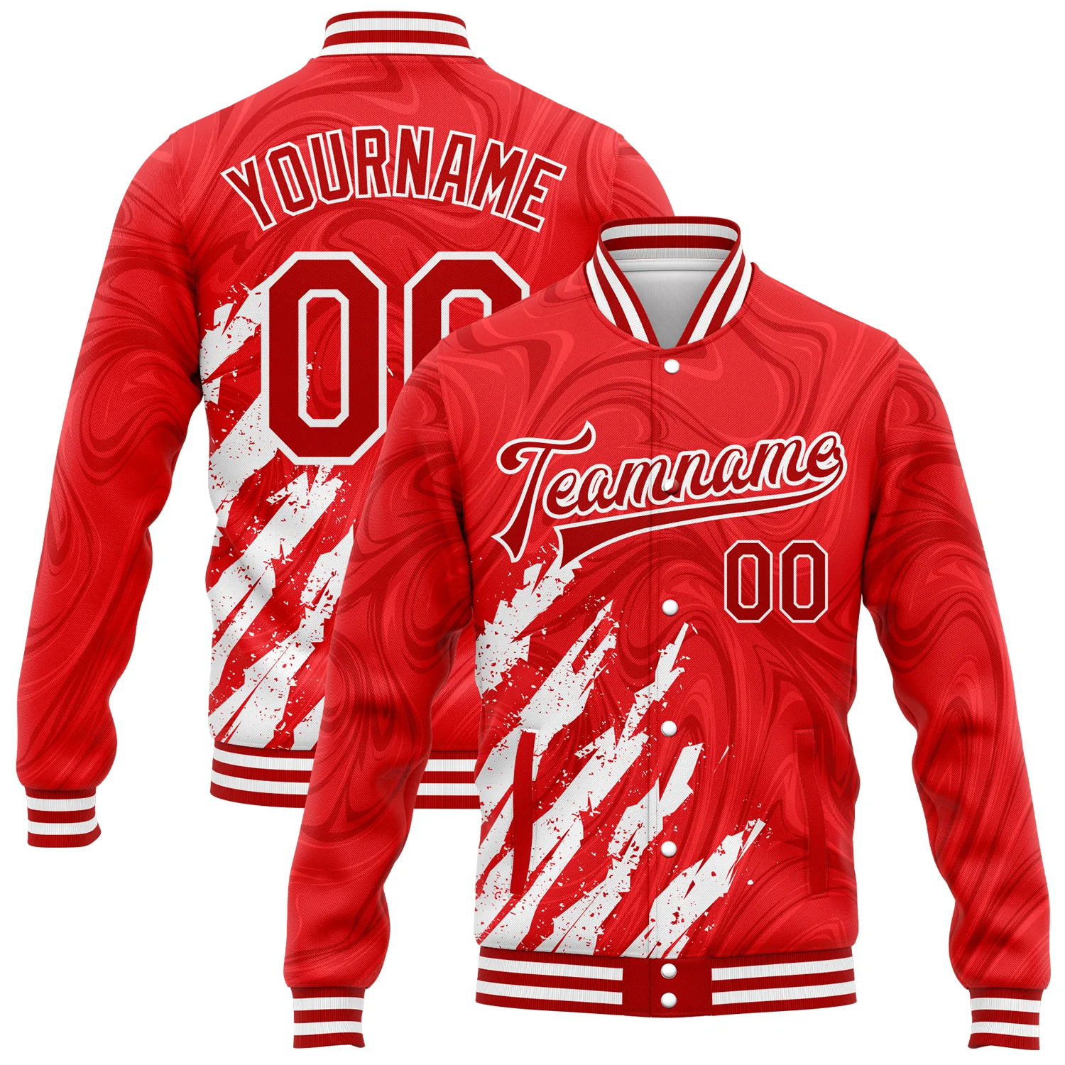 Custom Red Black-White 3D Pattern Design Bomber Full-Snap Varsity Letterman Jacket