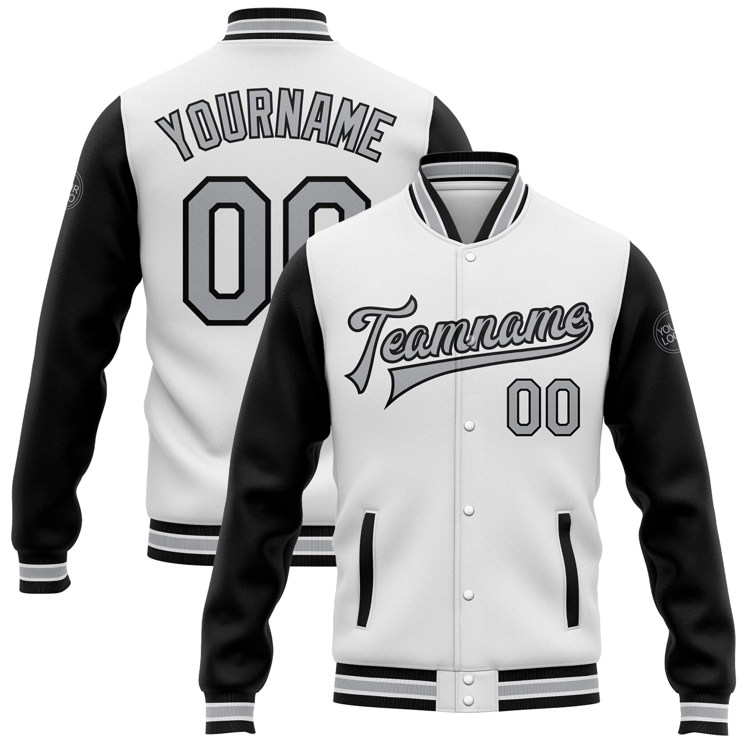 Custom White Gray-Black Bomber Full-Snap Varsity Letterman Two Tone Jacket