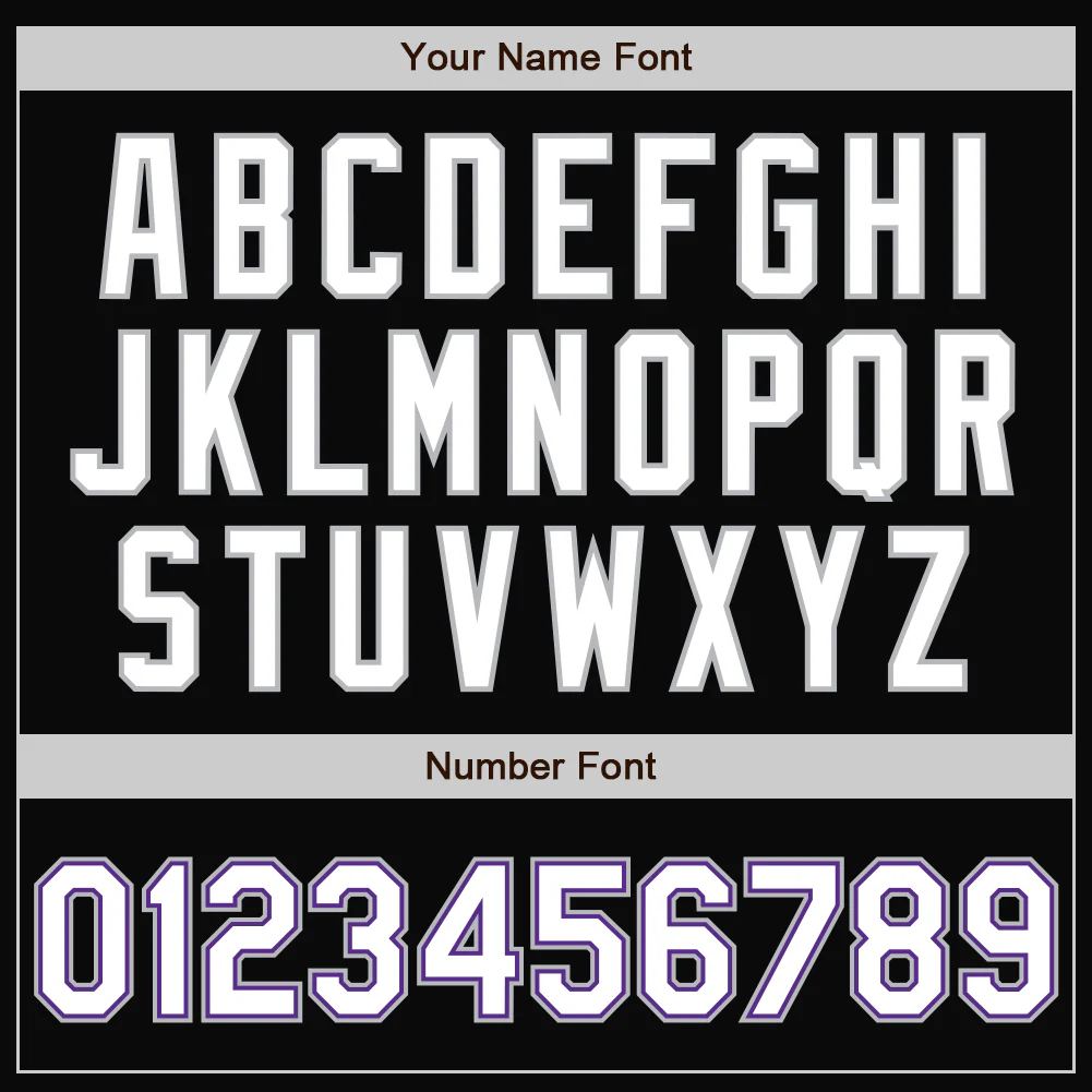 Custom Black White Purple-Gray Bomber Full-Snap Varsity Letterman Two Tone Jacket