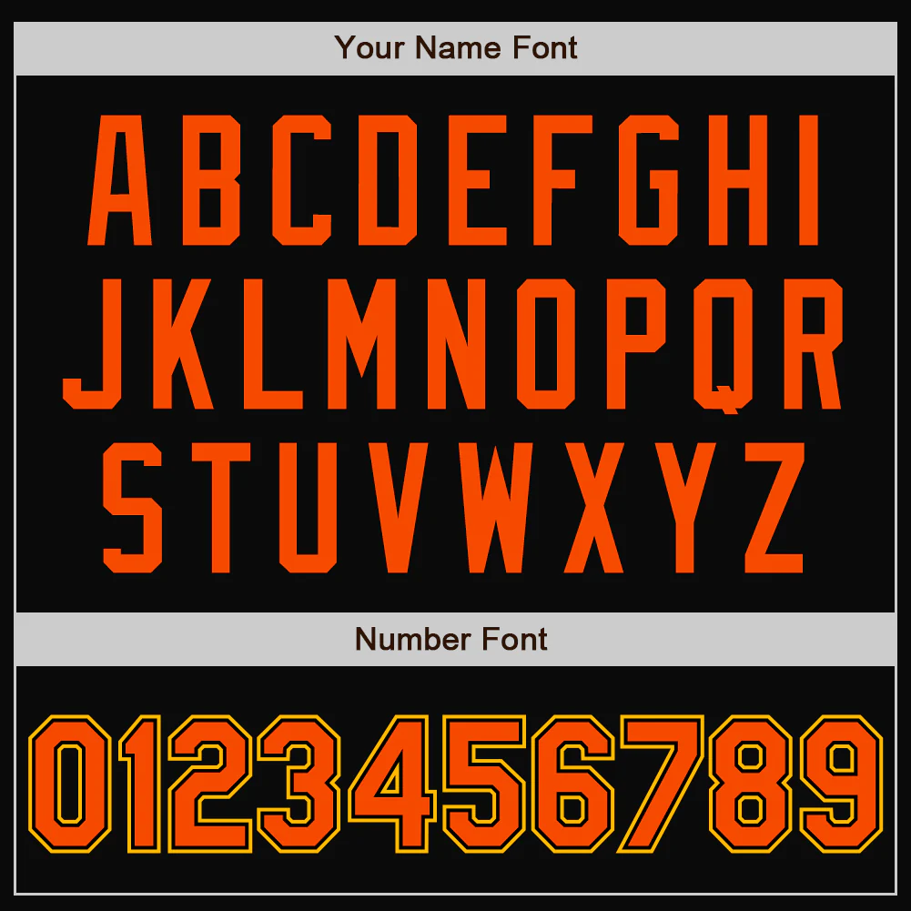 Custom Black Orange-Gold Bomber Full-Snap Varsity Letterman Two Tone Jacket