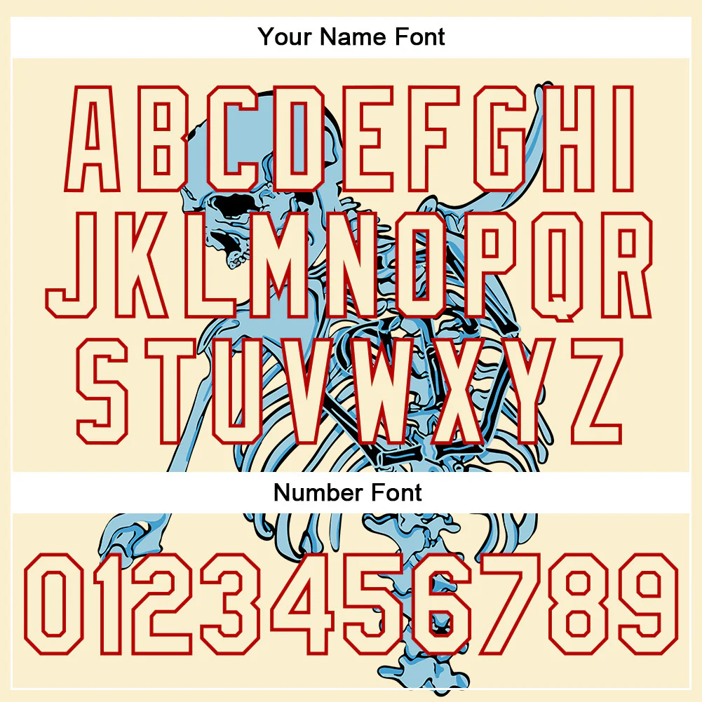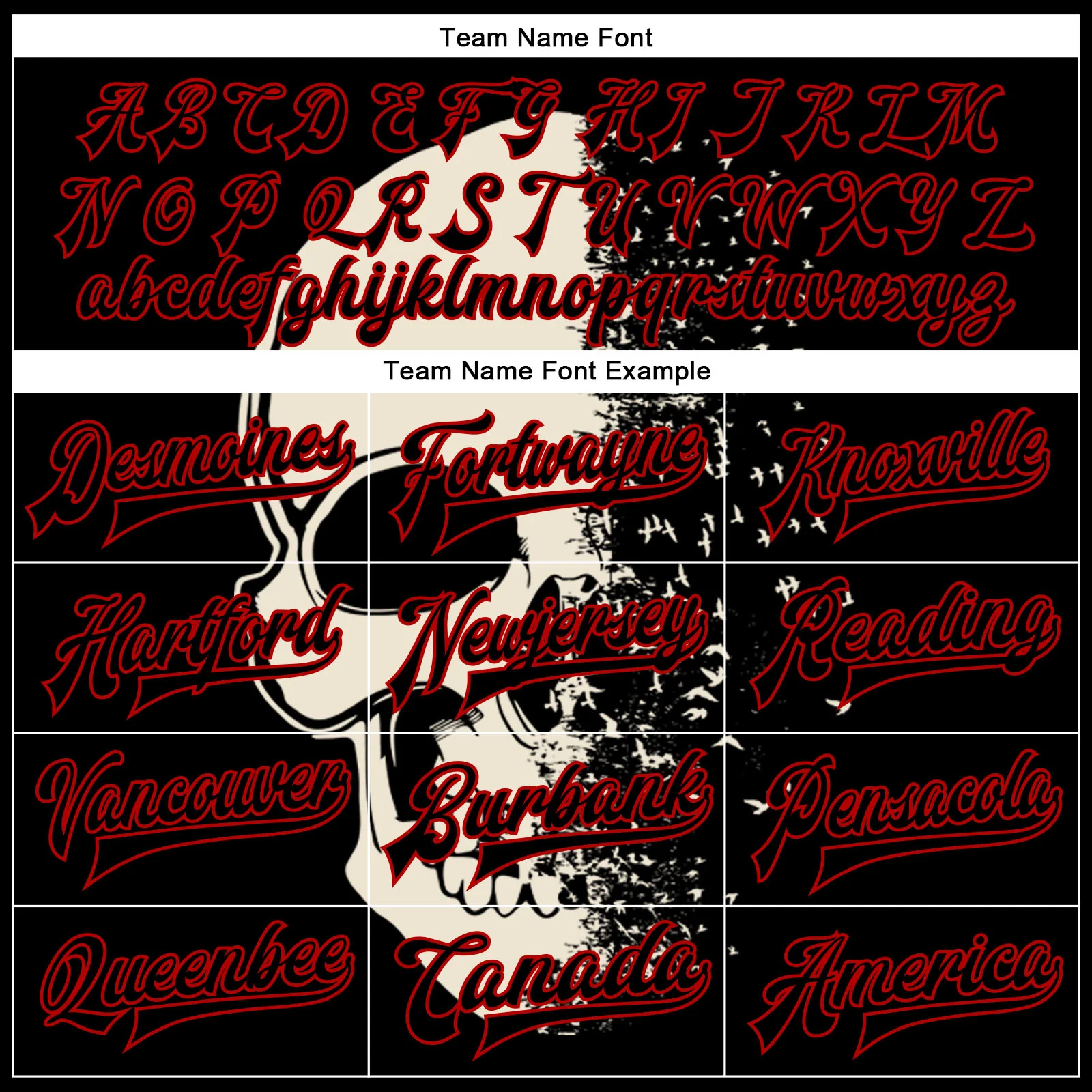 Custom Cream Red Skull Fashion 3D Bomber Full-Snap Varsity Letterman Jacket