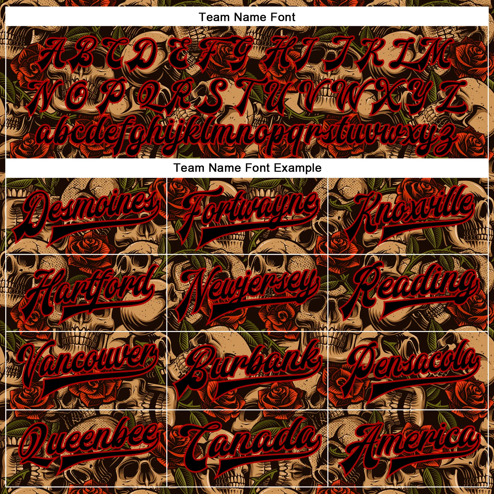 Custom Black Red Rose Skull Fashion 3D Bomber Full-Snap Varsity Letterman Jacket