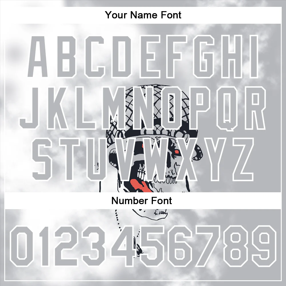 Custom Gray White Skull Fashion 3D Bomber Full-Snap Varsity Letterman Jacket