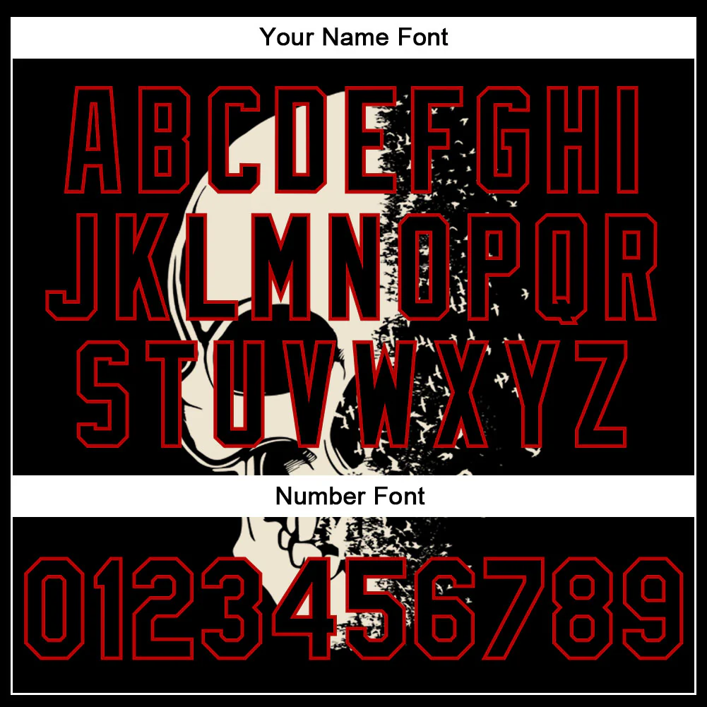 Custom Black Red Skull Fashion 3D Bomber Full-Snap Varsity Letterman Jacket